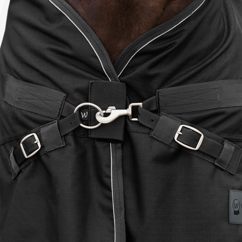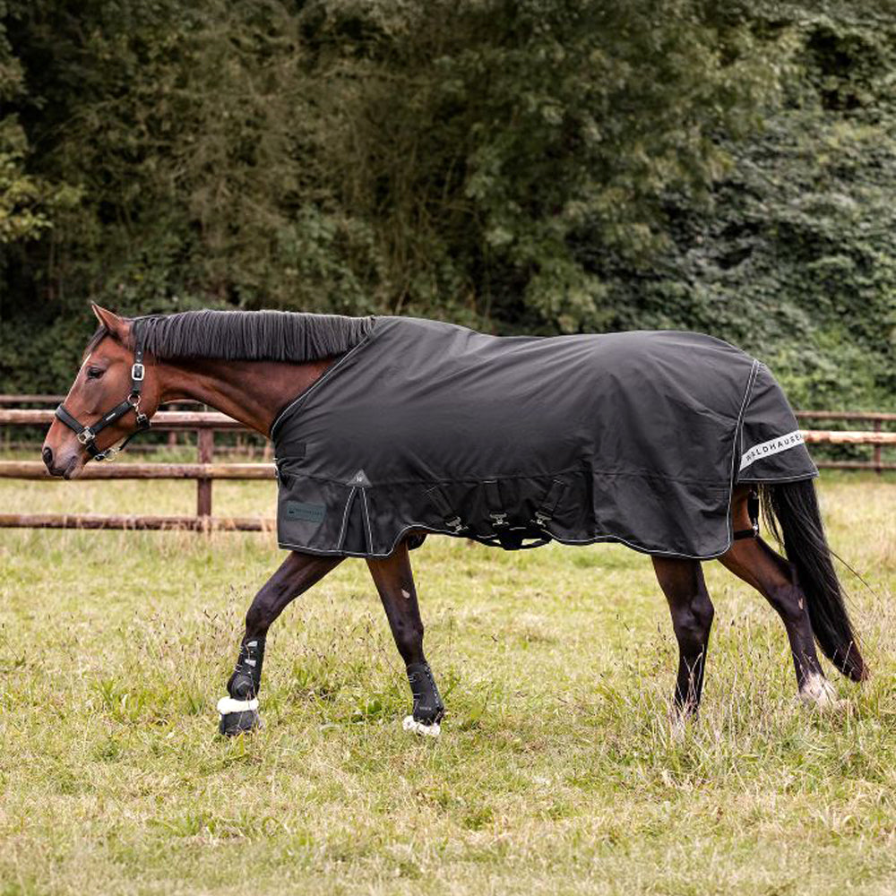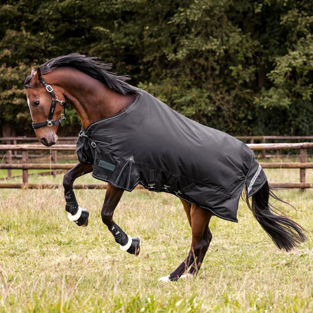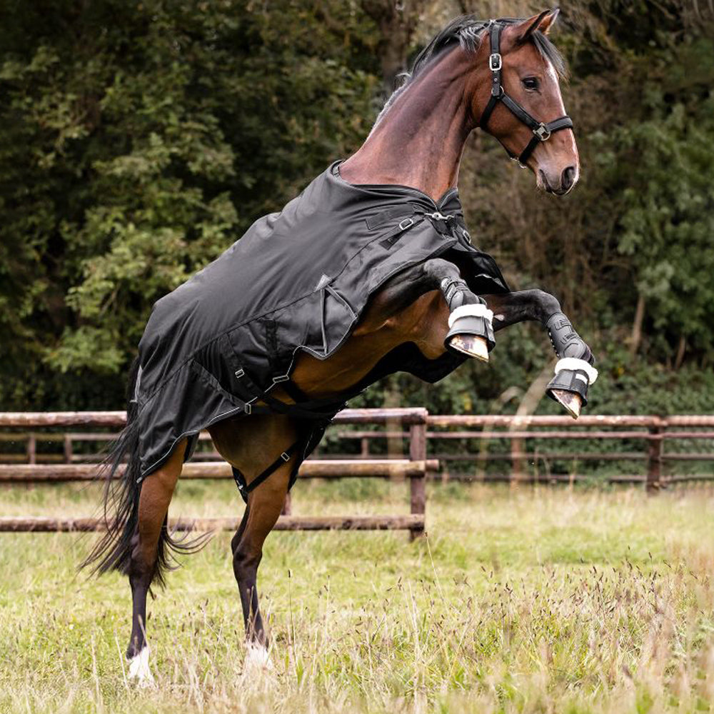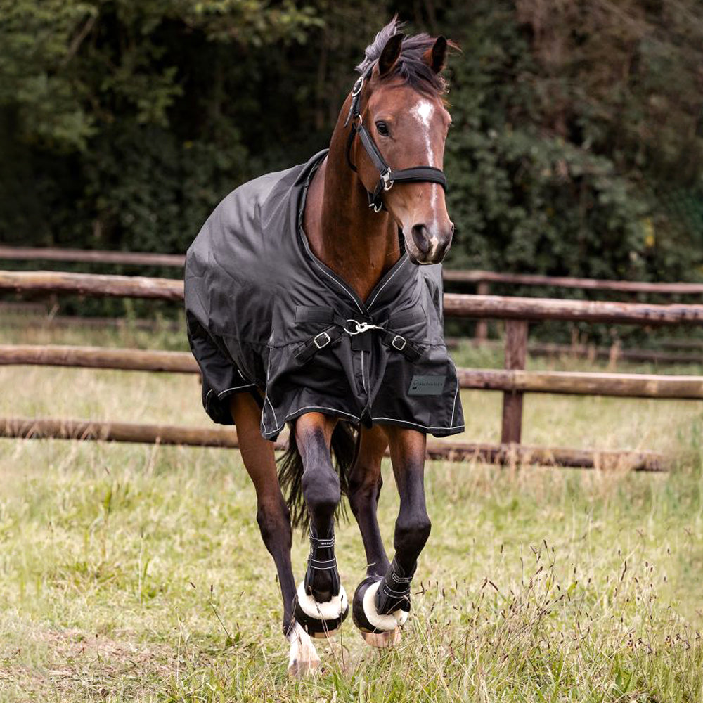 Il profilo riflettente, la scritta ad alta visibilità e il passamano riflettente garantiscono massima sicurezza anche in condizioni di scarsa luminosità. La coperta è inoltre compatibile con il sistema Clip-In, dispone di 3 cinghie sottopancia, cinturini per gli arti, laccetti per fissare un collo e un grande copricoda protettivo.