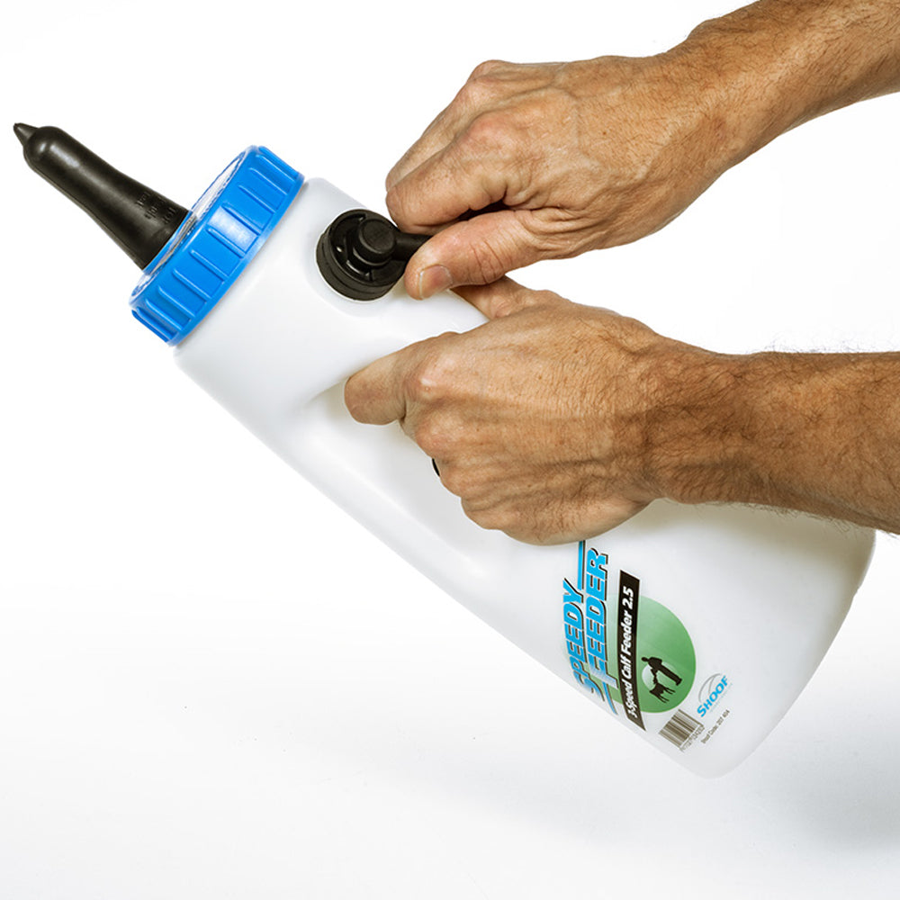 Lo Speedy Feeder è la soluzione ideale per l’alimentazione efficiente e igienica dei vitelli. Grazie al suo design intelligente con impugnatura multidirezionale, garantisce una presa facile e un controllo ottimale durante l’uso. Il collo ampio facilita il riempimento e la pulizia, mentre la tettarella innovativa simula la suzione naturale del vitello, riducendo lo stress durante l’alimentazione. Il sistema con valvola a tre vie consente di regolare il flusso del latte, favorendo una digestione equilibrata. Realizzato con materiali sicuri e durevoli, è disponibile sia come biberon completo che come tettarella di ricambio con coperchio.