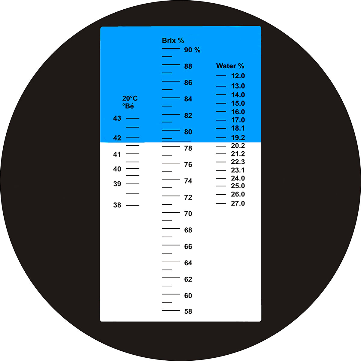 L’ApiOptic® Rifrattometro per Miele è lo strumento ideale per apicoltori e professionisti che desiderano misurare con precisione il contenuto di acqua nel miele. Grazie alla sua scala dell’acqua con intervalli di 0,25% e alla scala aggiuntiva per zuccheri secondo Brix, consente un’analisi rapida e accurata.