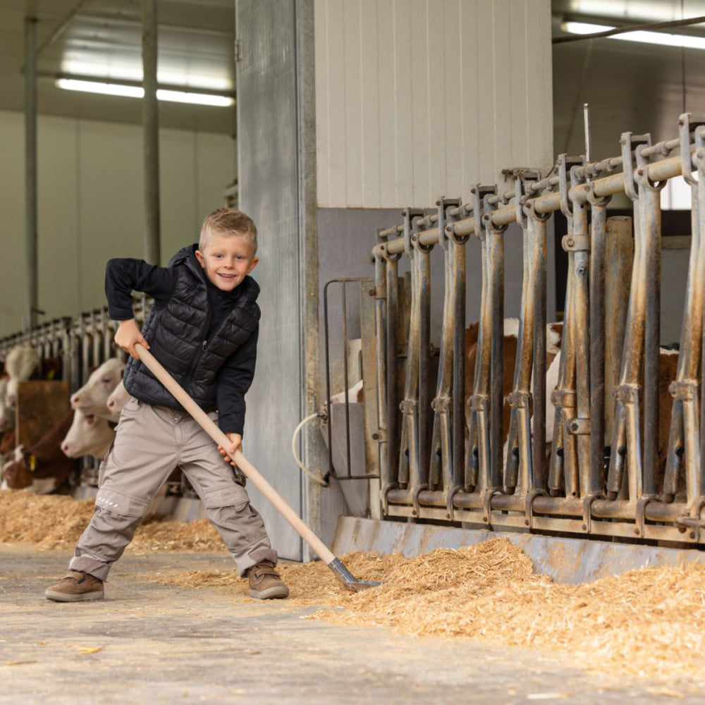 La mini pala in alluminio per bambini con manico in legno di faggio da 90cm è lo strumento ideale per i piccoli aiutanti in fattoria. Realizzata con materiali leggeri ma resistenti, questa pala è perfetta per spalare insilato, mangime e altri materiali leggeri nella stalla o nel fienile. Il design ergonomico, studiato per mani piccole, garantisce una presa comoda e sicura, rendendola adatta a bambini dai 5 anni in su. Con una lunghezza totale di 107cm e una pala da 26cm, è proporzionata per un uso facile e sicuro. Un accessorio educativo e pratico per introdurre i bambini al lavoro agricolo attraverso il gioco.