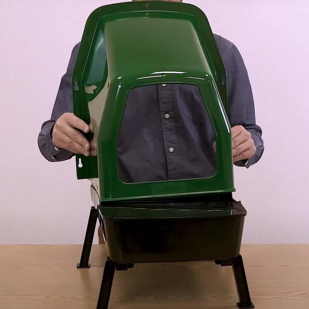 Dotato di un secchio in plastica robusta con coperchio, il nido è disponibile in due configurazioni: con gambe (370 x 444 x 630 mm) o senza gambe (370 x 444 x 503 mm), per adattarsi a diversi tipi di ambienti.