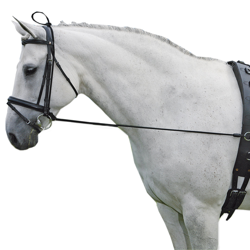 Le redini elastiche nere sono uno strumento indispensabile per il lavoro con cavalli che tendono a irrigidirsi nella zona della testa e delle spalle, opponendosi alla mano del cavaliere. Interamente elastiche e dotate di regolazione continua, queste redini si adattano perfettamente a ogni cavallo, garantendo un uso efficace sia durante la longia che nelle sessioni montate. Aiutano il cavallo a trovare un contatto corretto, migliorando postura e rilassamento, con un design pratico ed elegante.