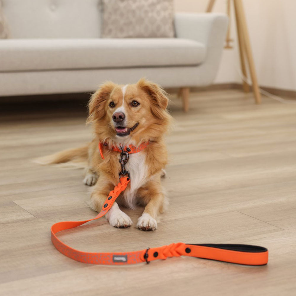 Il guinzaglio Puno arancione da 100 cm è la scelta ideale per chi cerca resistenza, praticità e sicurezza durante le passeggiate con il proprio cane. Realizzato in plastica di alta qualità, è impermeabile, facile da pulire e resistente a strappi e abrasioni, garantendo una lunga durata anche con un uso intenso. Le strisce riflettenti integrate migliorano la visibilità al buio, offrendo maggiore sicurezza in condizioni di scarsa illuminazione. Il passamano imbottito in gomma sintetica assicura una presa confortevole e salda, anche durante le attività più dinamiche. Perfetto per il tempo libero, lo sport o discipline come il mantrailing e il tracking. Lavabile, inodore e antibatterico, è dotato di rivetti, anello a D e moschettone in acciaio rivestito a polvere per una maggiore resistenza agli agenti atmosferici. Colore arancione/nero – Lunghezza: 100cm, Larghezza: 25mm.