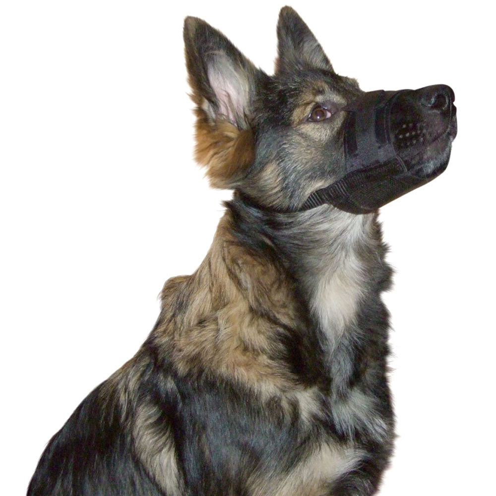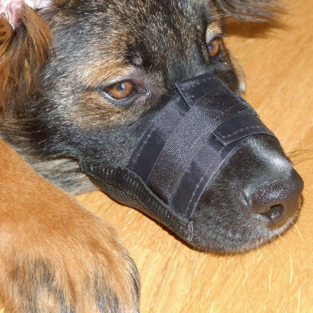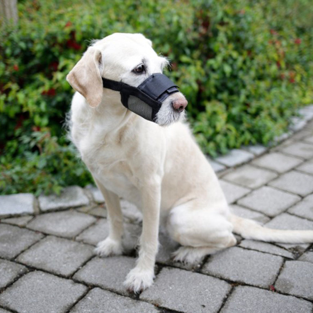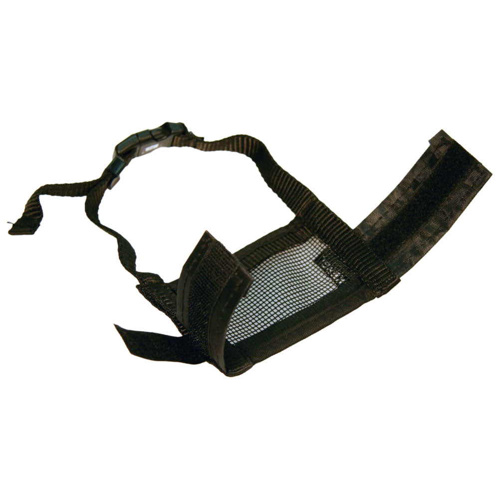 Museruola in nylon nero con chiusura a strappo e rete regolabile