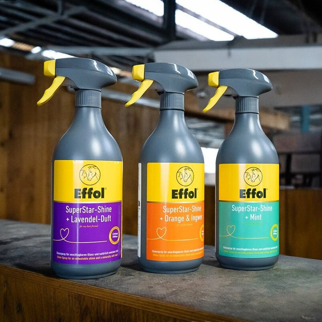 Effol SuperStar-Shine è uno spray premium per la cura del cavallo che dona una brillantezza straordinaria al manto, alla criniera e alla coda. La formula di alta qualità facilita la spazzolatura e mantiene il pelo morbido, curato e luminoso per diversi giorni. Nodi, trucioli e paglia possono essere rimossi facilmente durante la pettinatura.