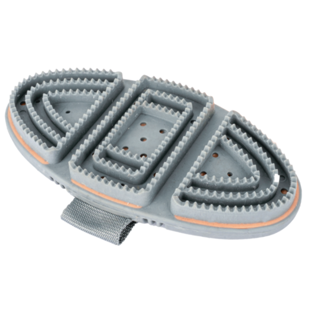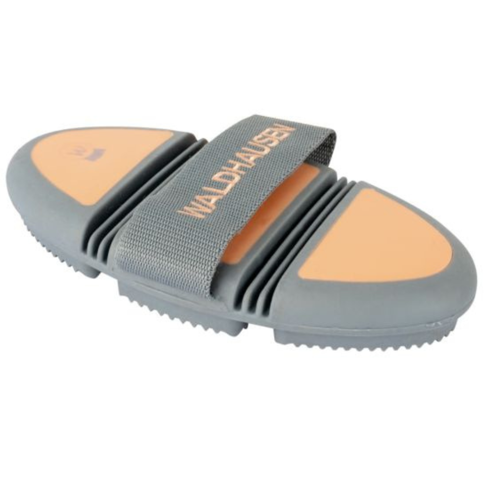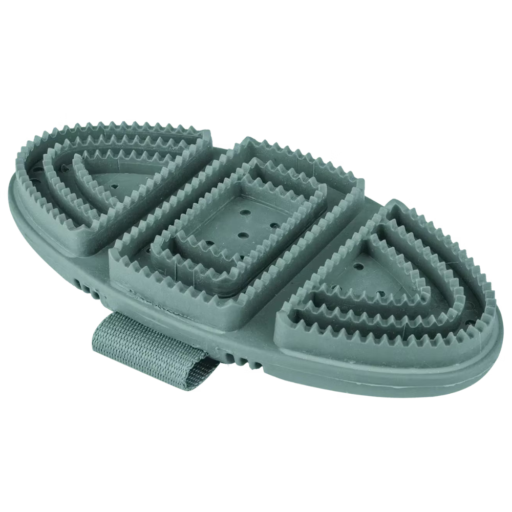 - Striglia flessibile Waldhausen Flex: rimuove sporco e peli sciolti, si adatta alle forme del cavallo per una pulizia efficace.