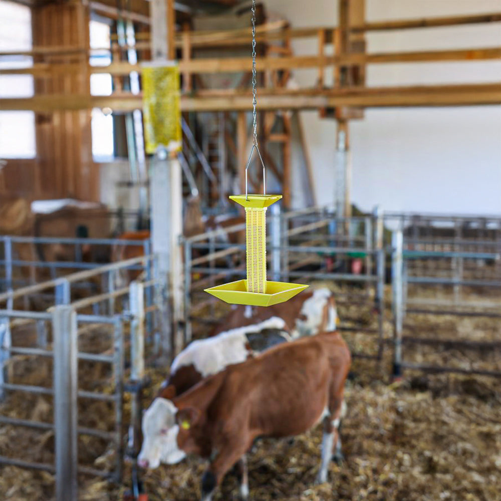 La trappola per mosche in plastica con staffa per sospensione è una soluzione pratica ed efficace per il controllo delle infestazioni di mosche in ambienti agricoli, zootecnici o domestici. Realizzata in plastica resistente, è facile da installare e da riempire, ad esempio con esche granulari come AzametiFly. Grazie alla sua alta efficacia di cattura, è consigliato l'utilizzo di circa 4 trappole ogni 100 m² per risultati ottimali. Il suo design consente un uso semplice e pratico, garantendo elevate prestazioni anche in combinazione con trattamenti estensivi di insetticidi per ingestione. Posizionata vicino a fonti luminose, la trappola aumenta la sua attrattività, migliorando ulteriormente i risultati. Dimensioni: 19 x 16,2 x 25,5cm.