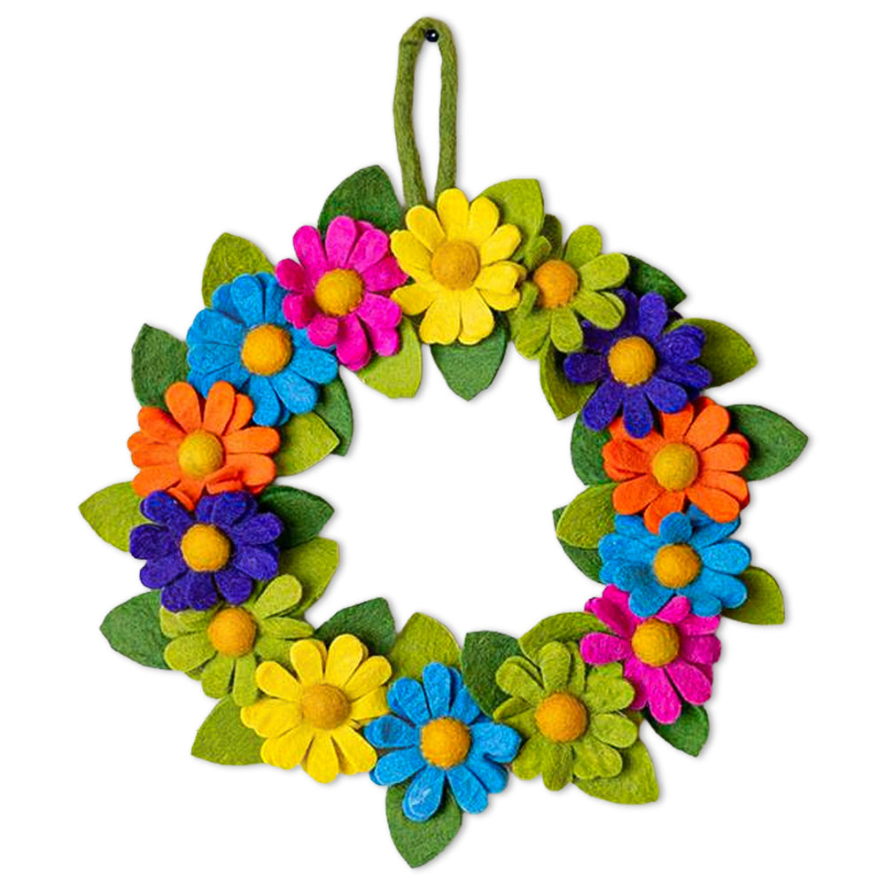 Ghirlanda in feltro in formato XL, realizzata a mano e decorata con margherite. Perfetta come fuoriporta, centrotavola o dettaglio stagionale per la casa. Morbida e curata nei dettagli: ideale anche come idea regalo.