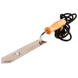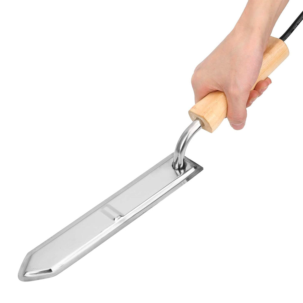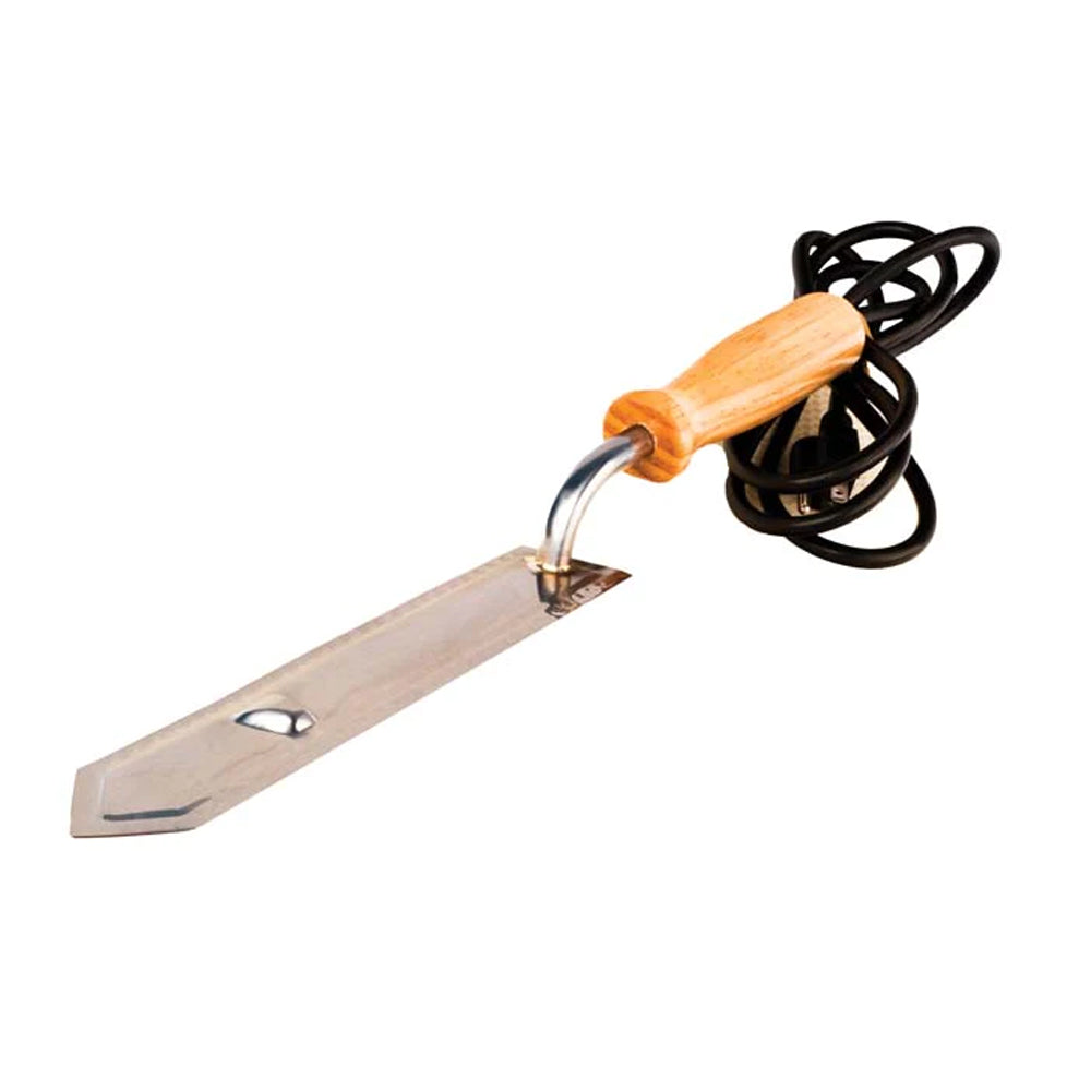 La lama elettrica è realizzata in acciaio inox di alta qualità, resistente alla corrosione e facile da pulire, assicurando igiene e sicurezza alimentare. Il design ergonomico permette un utilizzo comodo e stabile, sia per piccoli che per grandi quantitativi di telai, rendendo il lavoro più efficiente senza danneggiare il miele o i telai.