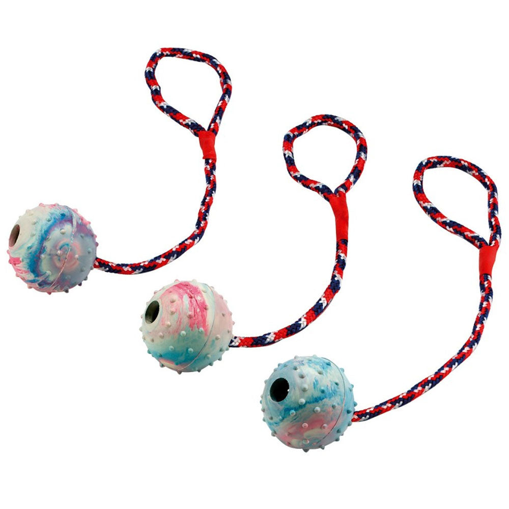 Il nostro giocattolo per cani con pallina e corda è progettato per offrire ore di divertimento attivo al tuo animale domestico. Realizzato con materiali resistenti e sicuri, è perfetto per il lancio, il riporto e il gioco interattivo. La campanella integrata all'interno della pallina stimola la curiosità del cane e lo invoglia a muoversi, migliorando il suo benessere fisico e mentale. La corda intrecciata garantisce una presa salda, ideale anche per il tira e molla. Con colori vivaci e struttura durevole, questo giocattolo è una scelta eccellente per stimolare l’attività quotidiana del tuo cane e rafforzare il legame tra voi.