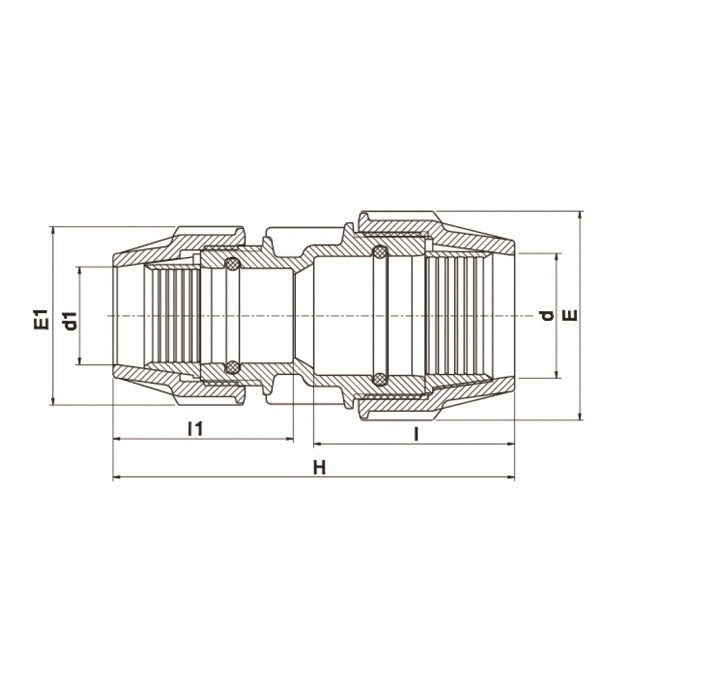CORPO: Polipropilene Hi-grade copolimero nero (PP-B) GHIERA: Polipropilene Hi-grade copolimero grigio/nero GUARNIZIONI: Gomma nitrilica nera (NBR) per i soli diam.75-90-110 mm gomma copolimero etilene propilene (EPDM) ANELLO DI AGGRAFFAGGIO: Poliacetale