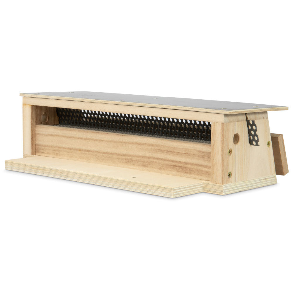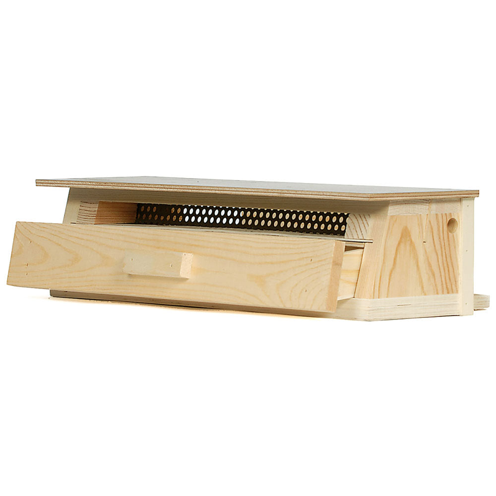 La trappola per polline Liebig è progettata come accessorio da montare sull’apertura al volo del fondo alto della tua arnia. Include una vaschetta raccogli‐polline e un pettine laterale estraibile con fori rotondi, che permette alle api di passare mentre il polline viene intercettato.