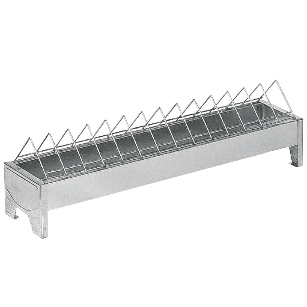 Con dimensioni di 500 x 120 x 142 mm, questa mangiatoia è dotata di una griglia anti-spreco che minimizza le perdite di mangime, migliorando l’efficienza e riducendo i costi. Il design a cerniera della griglia consente un riempimento rapido e una facile pulizia e disinfezione.