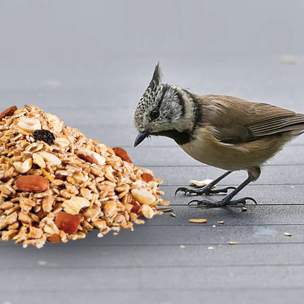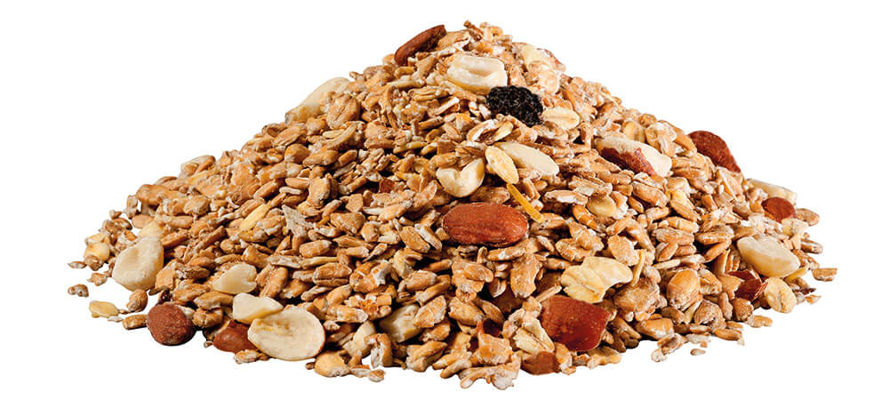 - I gustosi fiocchi di cereali, completati con arachidi e uvetta ricche di energia, attirano tutti gli uccelli verso la mangiatoia per uccelli o verso il luogo di alimentazione.