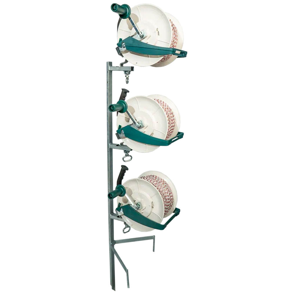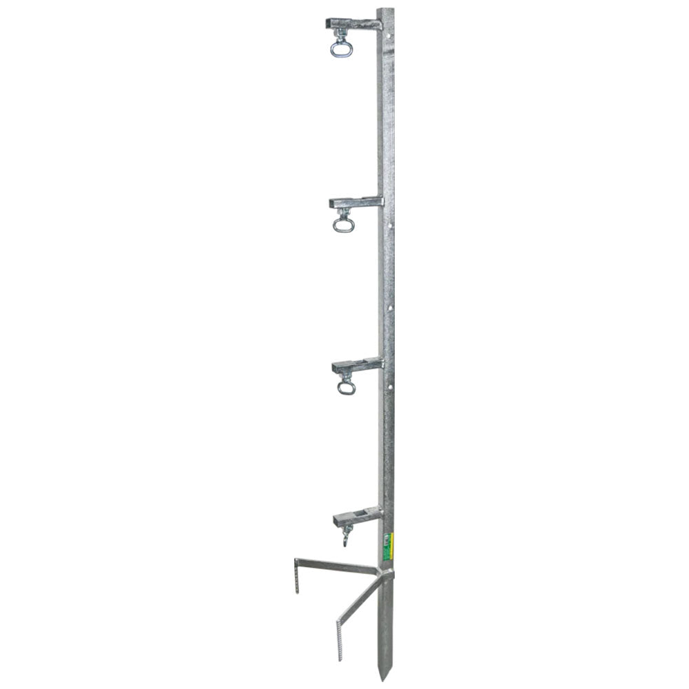 Palo di montaggio speciale per 3 o 4 bobine, adatto a recinzioni fino a 0,90m (3 bobine) o 1,30m (4 bobine). Ideale per recinzioni mobili più lunghe con numerosi angoli. Le bobine sono facilmente removibili senza attrezzi, consentendo un avvolgimento agevole anche su percorsi di recinzione curvi. Resistente e pratico per un’installazione efficiente della recinzione.