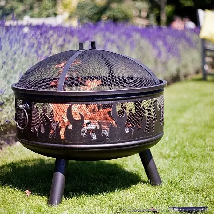 La sicurezza è una priorità grazie alla protezione antiscintille e alle gambe rialzate, che garantiscono stabilità e protezione. Le maniglie laterali rendono il braciere facilmente trasportabile e riposizionabile in base alle tue esigenze.