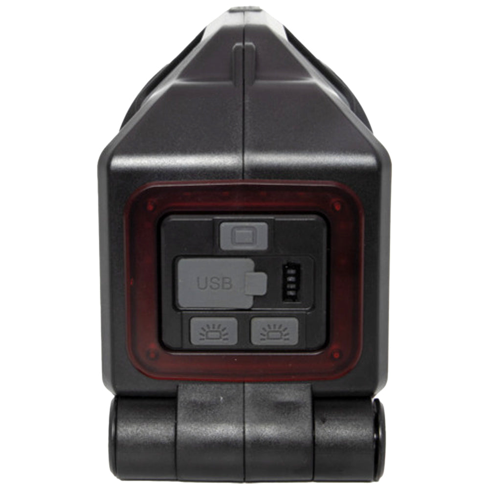 Il faro è dotato di quattro sorgenti luminose indipendenti: una luce principale spot con 2400 lm a piena potenza o 800 lm in modalità risparmio, due luci laterali COB con 360 o 120 lm, e una luce posteriore rossa con funzione lampeggiante, perfetta per segnalazione e sicurezza. Il fascio luminoso raggiunge fino a 530 metri, assicurando una visibilità eccezionale anche a lunga distanza.