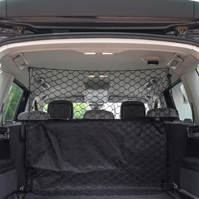 Questa rete per auto e realizzata in nylon e viene utilizzata per la sicurezza di persone e animali durante la guida. La rete per auto in nylon resistente e l'ideale per tenere animali e oggetti sul sedile posteriore o nell'area di carico o nel bagagliaio. Impedisce al cane di arrampicarsi in avanti e impedisce anche di essere lanciato in avanti durante una manovra di frenata indesiderata. Questo protegge non solo il cane ma anche l'essere umano dalle lesioni. La dimensione della rete e flessibile, a seconda che la si allunghi pio in alto o pio in larghezza.