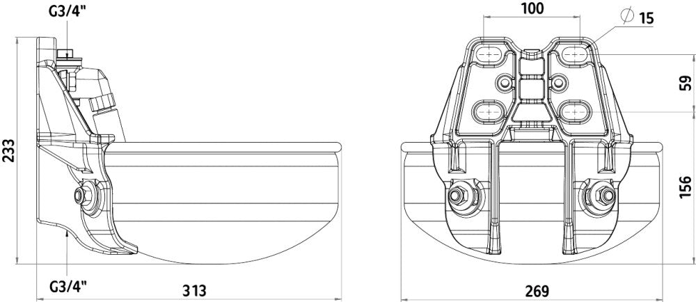L'installazione è flessibile grazie al fissaggio a 4 punti, che permette il montaggio su parete o tubo (materiale di fissaggio non incluso). Inoltre, l’attacco dell’acqua G 1/2" consente un collegamento pratico sia dall'alto che dal basso, adattandosi a diverse configurazioni di stalla.