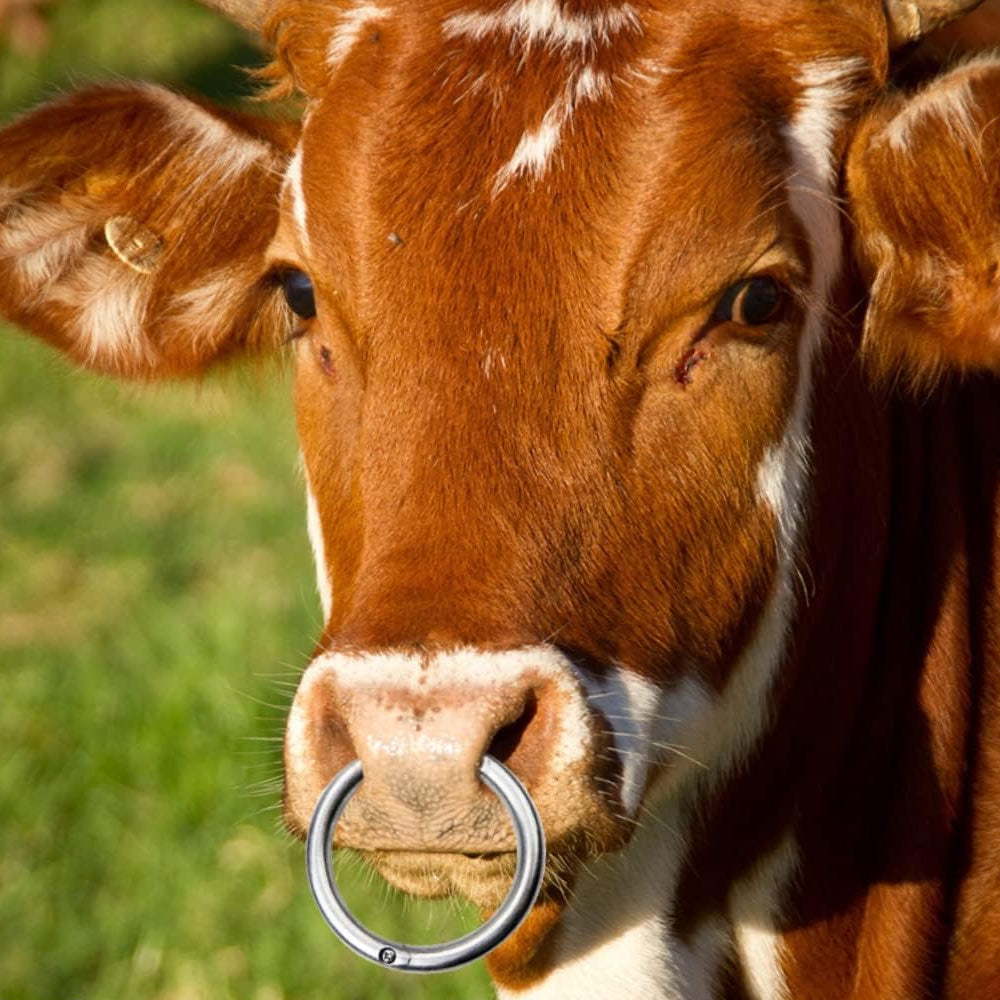 - Holen Sie sich den Drehbulli Nasenring für Ihre Nutztiere und bieten Sie ihnen maximalen Komfort und Sicherheit. Dieser Nasenring ist aus hochwertigem, rostfreiem Material gefertigt, das Langlebigkeit und Zuverlässigkeit garantiert. Sein innovatives Design ermöglicht eine einfache und stressfreie Anwendung, sowohl für das Tier als auch für den Landwirt.