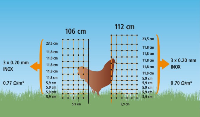 Dank besonders enger Maschenweite im unteren Bereich hält das Netz auch kleinere Tiere sicher im Gehege. Die standfesten, gut sichtbaren Kunststoffpfähle gewährleisten sicheren Stand – selbst bei unebenem Boden.