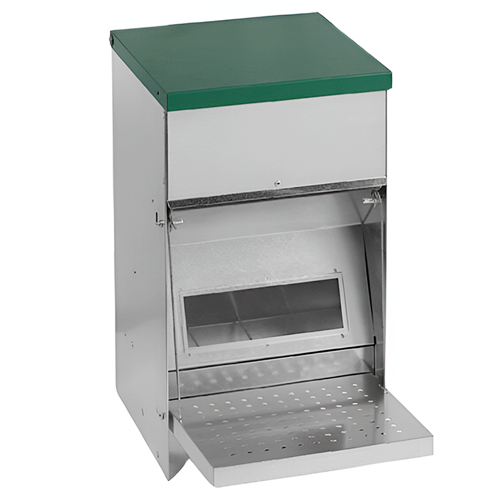 Geflügel-Futterautomat mit Trittklappe – Auslaufsicher Metall 10kg
