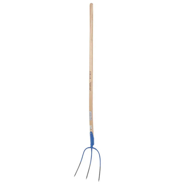 Die Heugabel mit Stiel, 3 Zinken (31x29cm) ist ein äußerst robustes und langlebiges Werkzeug, das für landwirtschaftliche und tierhaltungsbezogene Arbeiten entwickelt wurde. Sie ist aus einem einzigen Stück geschmiedet und gehärtet, was höchste Stabilität und Haltbarkeit garantiert. Mit Stift- und Schienenklemme für sicheren Halt sowie einem gebogenen Eschenstiel von 165cm bietet sie ergonomisches und komfortables Arbeiten. Perfekt geeignet zum Bewegen von Heu, Stroh und leichtem Stallmaterial.