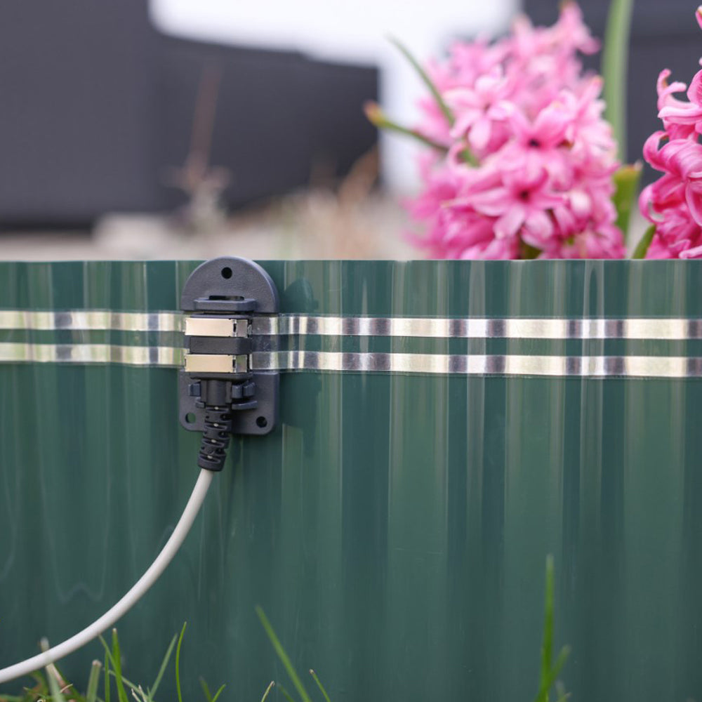 Die niedrige Spannung von 9 Volt ist völlig ungefährlich für Menschen und Haustiere. Die Installation gelingt mühelos dank des selbstklebenden Bandes, das auf Holz, Metall, Kunststoff, Stein oder Beton haftet.