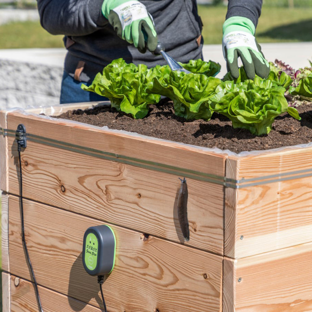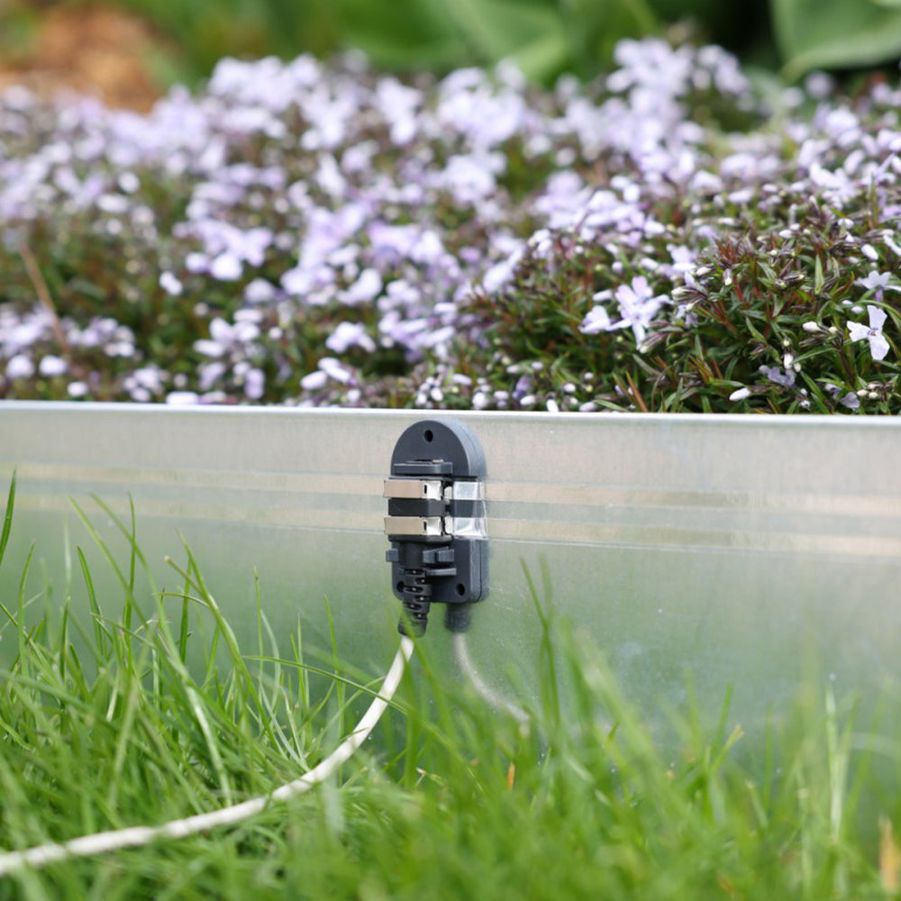 Das System ist flexibel erweiterbar bis zu 30 m und ermöglicht den Schutz mehrerer Beete mit nur einem Gerät. Der batteriebetriebene Betrieb macht einen Stromanschluss überflüssig, während die LED-Anzeige den Batteriestatus und den Zaunbetrieb zuverlässig kontrolliert.