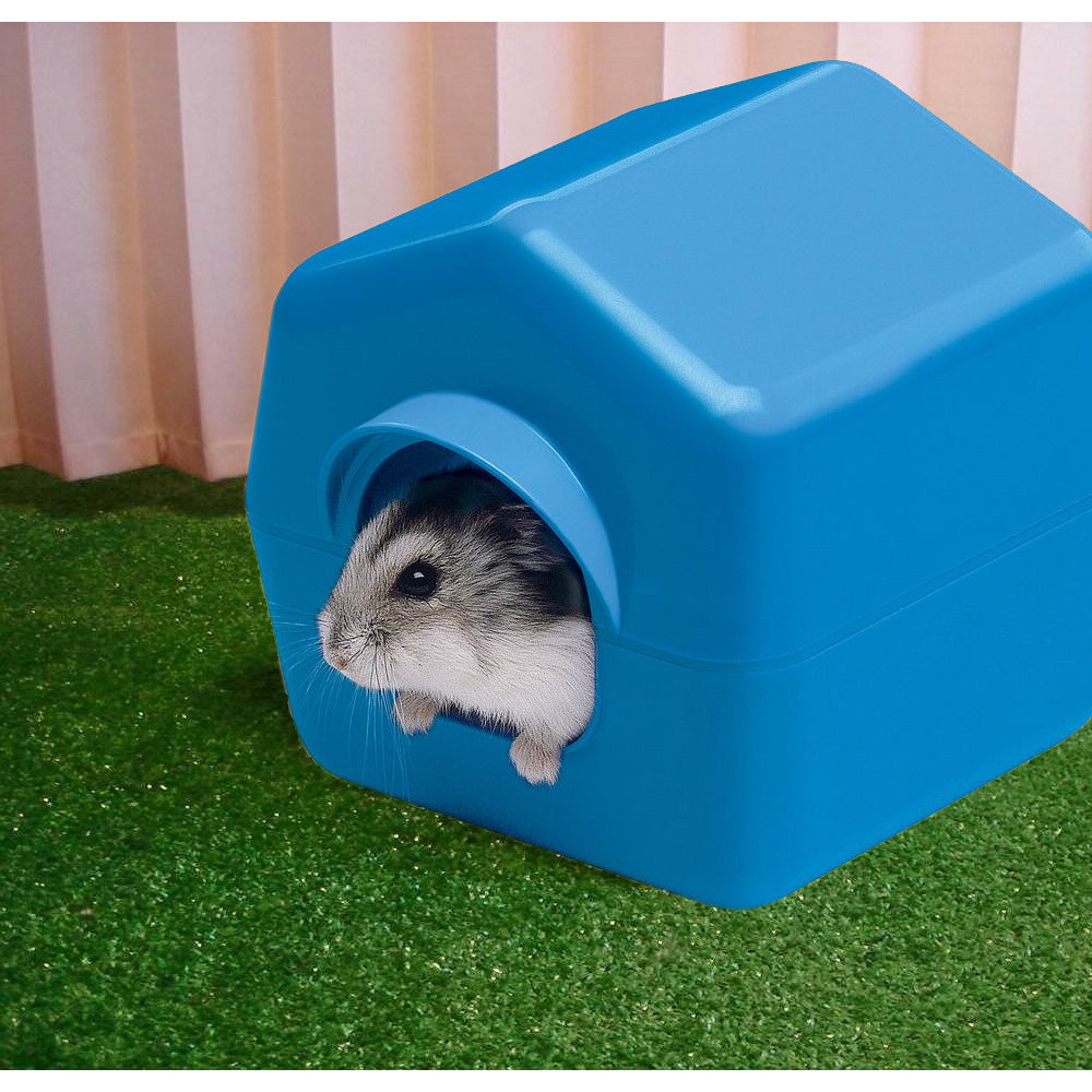 - Hier ist ein farbenfrohes Kunststoffhaus für Hamster und andere kleine Nagetiere wie Mäuse und Rennmäuse, das Ihren kleinen Freunden Unterschlupf bietet! Isba hat eine schöne kompakte Form mit einem schrägen Dach und einer praktischen Vordertür.