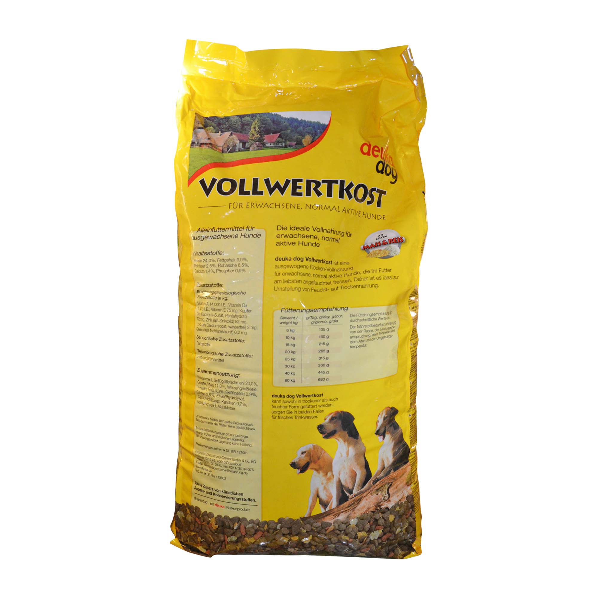 - Deuka Dog Vollwertfutter ist ideal für die Ernährung ausgewachsener und normal aktiver Hunde. Das Futter enthält wertvolle Inhaltsstoffe aus natürlichen Rohstoffen. Es kann hydratisiert verabreicht werden, da die Flocken auf natürliche Weise Wasser aufnehmen und daher besonders bekömmlich sind. Zutaten: