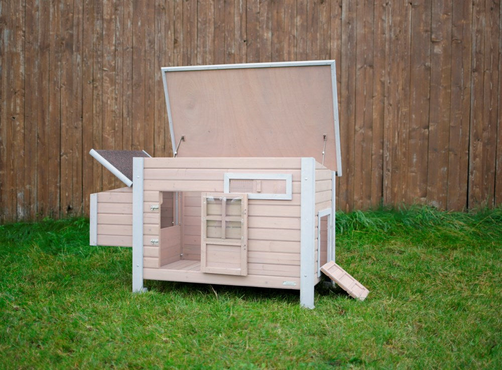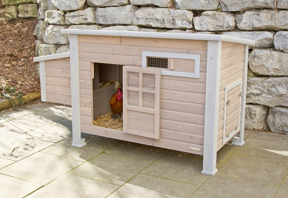 Der Hühnerstall Emma aus Holz bietet Ihren Hühnern ein sicheres, komfortables und gut belüftetes Zuhause. Hergestellt aus Cunningham-Zypresse, die mit einer Schutzlasur behandelt wurde, ist er besonders wetterbeständig und langlebig.
