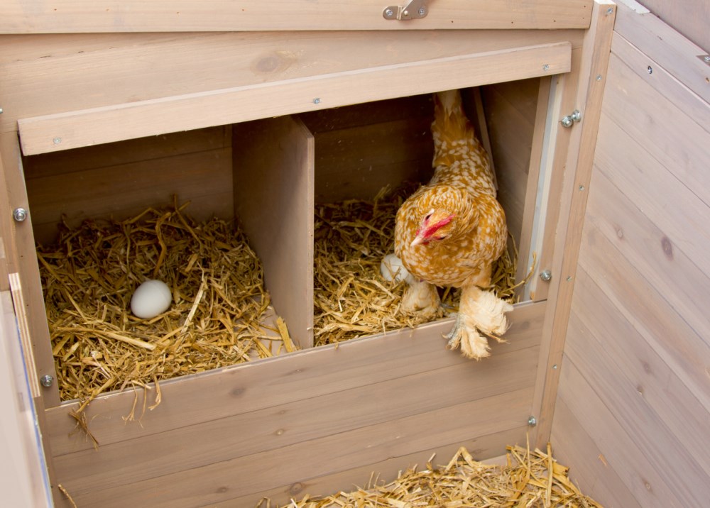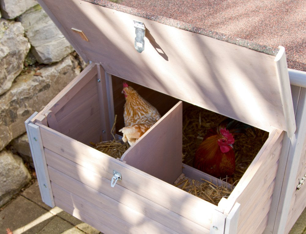 - 2 geräumige Nistkästen für bequemes Eierlegen