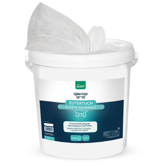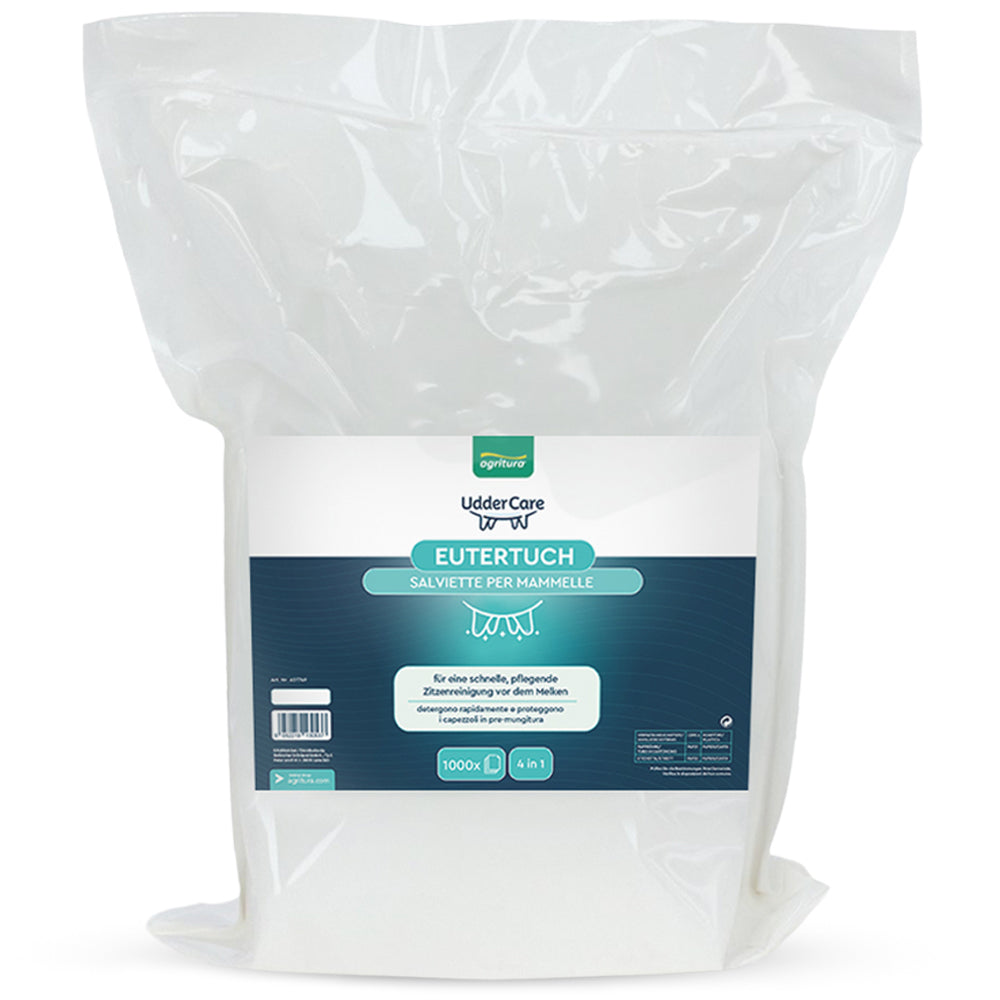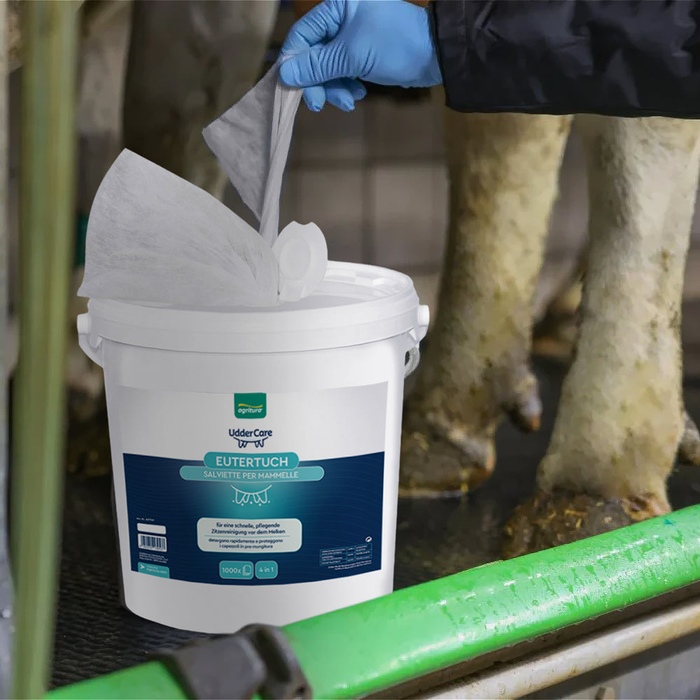 Euter-Reinigungstücher – Alkoholfreie, biologisch abbaubare Tücher für Melkhygiene. Extra weich zur Mastitis-Vorbeugung und Euterpflege. Praktischer Spender mit 800 reißfesten Tüchern. Ideal für milchqualitätsbewusste Betriebe