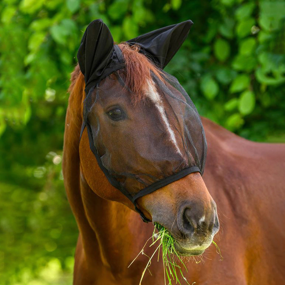 Fliegenmaske Basic mit Ohren für Pferde Schutz - Schwarz