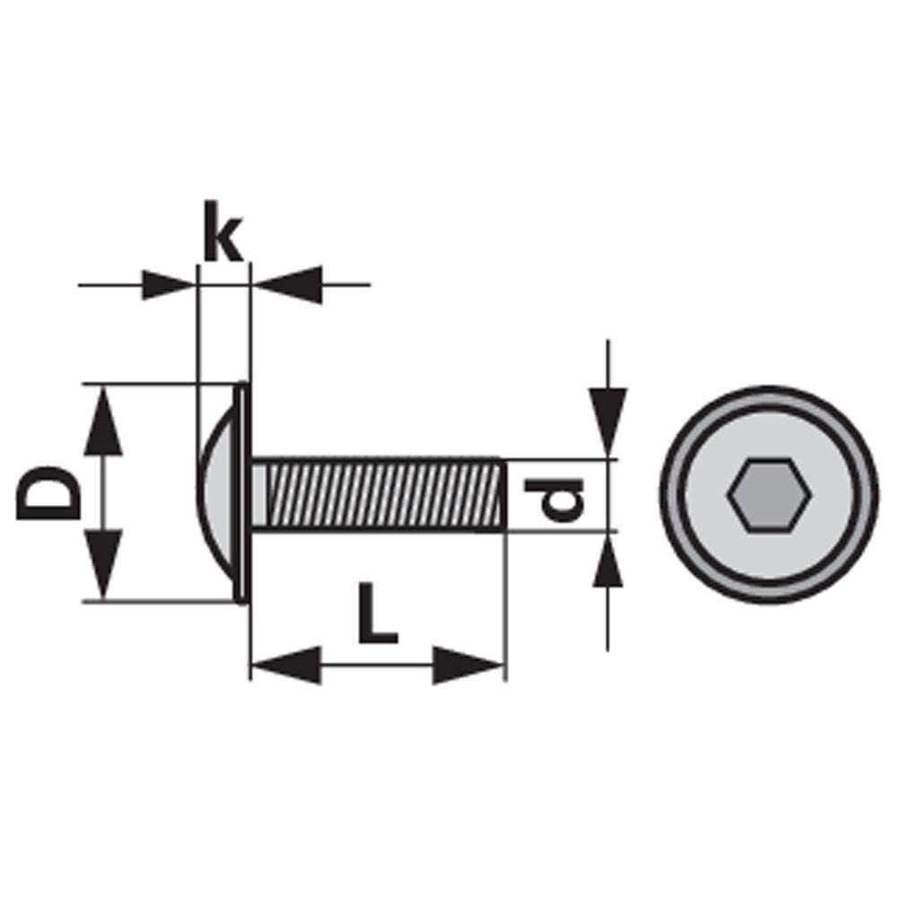 Flachkopfschraube mit Innensechskant und Bund M6/M8 x 14mm, Güte 10.9 Stahl verzinkt