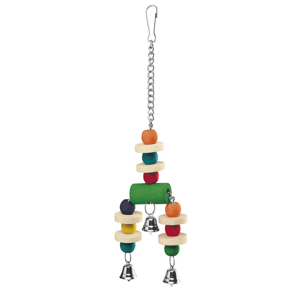 Dieses farbenfrohe Holzspielzeug hält Ihren Papagei aktiv und beschäftigt. Das PA4092 Papageienspielzeug wurde entwickelt, um den natürlichen Spieltrieb und die Neugier Ihres gefiederten Freundes zu fördern. Es besteht aus lackiertem, ungiftigem Holz und verfügt über eine kleine Glocke sowie eine robuste Metallkette mit Haken zur einfachen Befestigung am Käfig.
