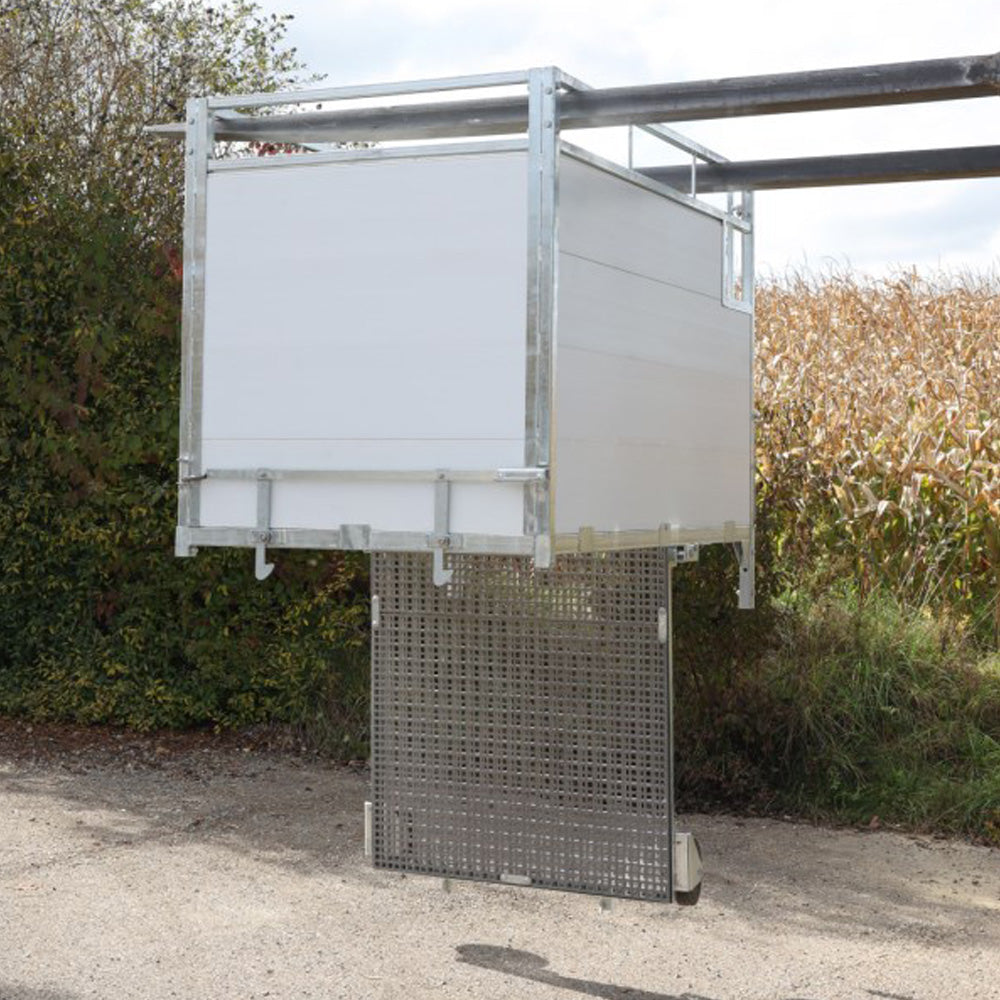 Die Box ist mit einem Halter für den Tränkeeimer sowie zwei klappbaren Eimerhaltern ausgestattet. Praktische Klappgriffe an der Vorderseite und die Möglichkeit des Transports mit Palettengabeln erleichtern die Handhabung erheblich. In der Premium-Ausführung ermöglicht der kippbare Boden mit automatischer Verriegelung eine schnelle und komfortable Reinigung, sodass Hygiene stets gewährleistet ist.