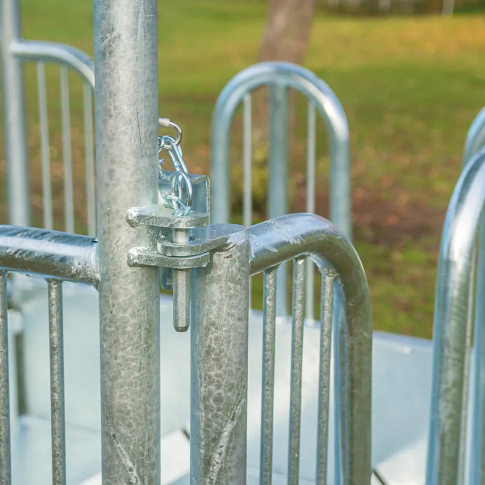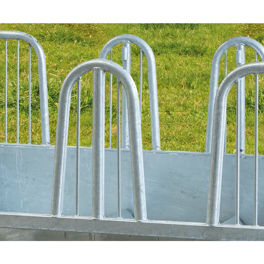 Der Kompakte Rechteck-Futtertrog mit Sicherheits-Fressgitter bietet eine pferdesichere Fütterungslösung mit 12 Fressplätzen im optimalen Preis-Leistungs-Verhältnis. Zusätzliche Stangen im Fressgitter decken kritische Spaltbereiche ab, und mit einem Sicherheitsabstand von maximal 5cm erfüllt der Futtertrog die BMEL-Richtlinien für die Pferdehaltung. Durch doppelte Verstärkungsrohre wird höchste Stabilität und Langlebigkeit bei reduziertem Gewicht gewährleistet.