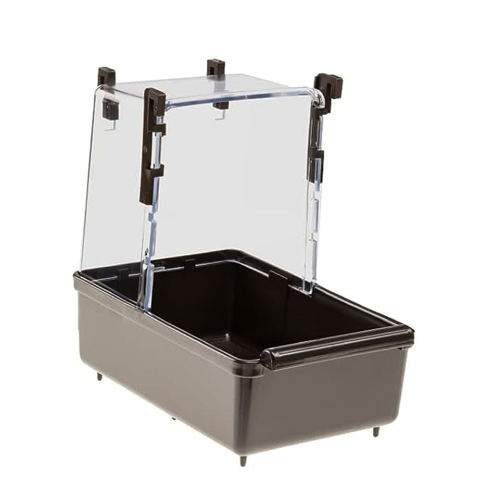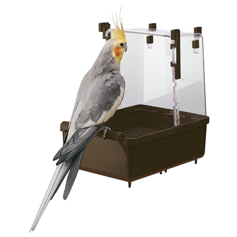 Zubehörteil L101 ist ein Badehaus für Papageien welches am Käfig befestigt werden kann. Es hat eine große, mit Wasser zu befüllende Fläche mit einer nützlichen Sitzstange für Ihren Papagei. Darüber hinaus ist das Badehaus mit einer transparenten Kunststoffwand ausgestattet, um das Herausspritzen des Wassers zu verhindern. In verschiedenen Farben erhältlich.