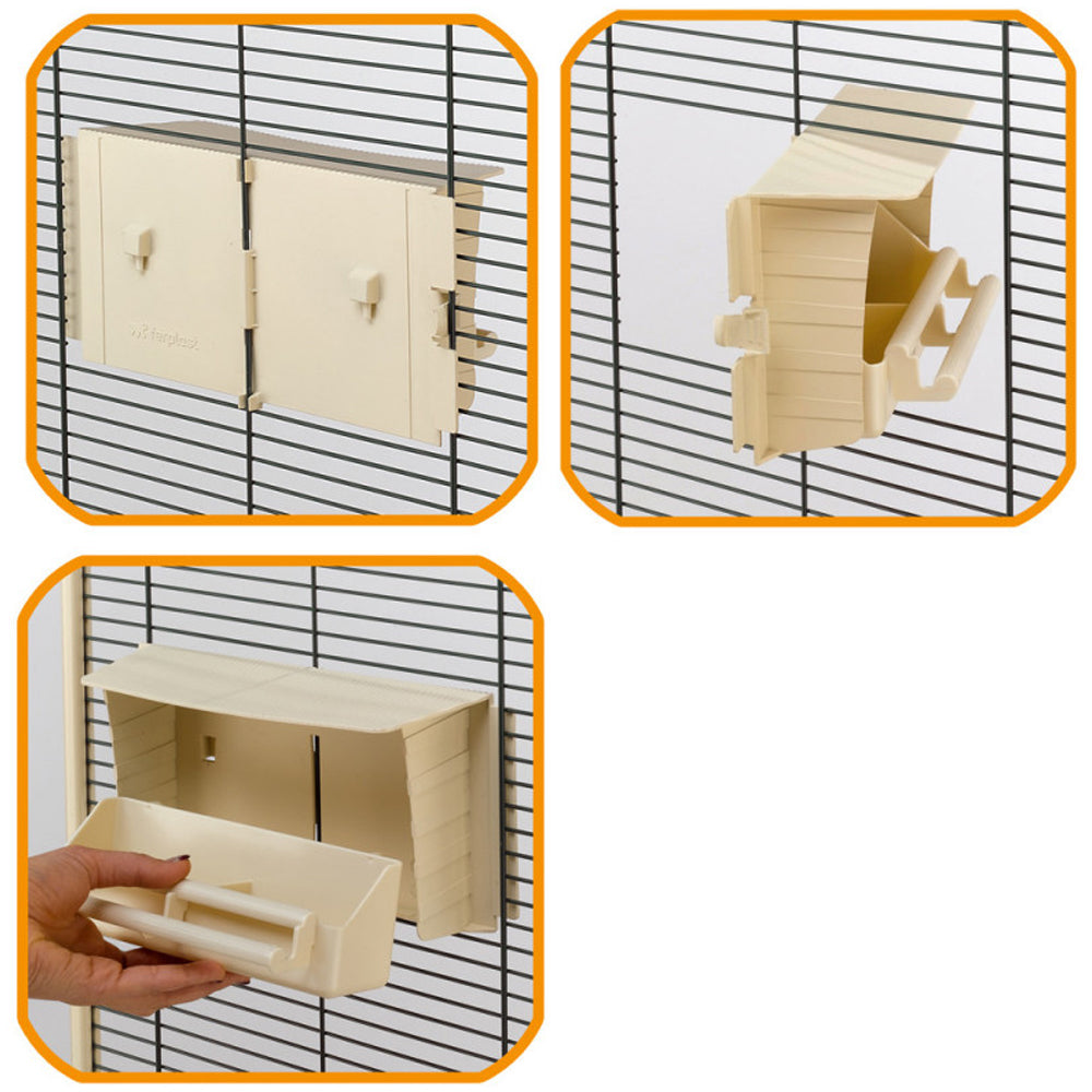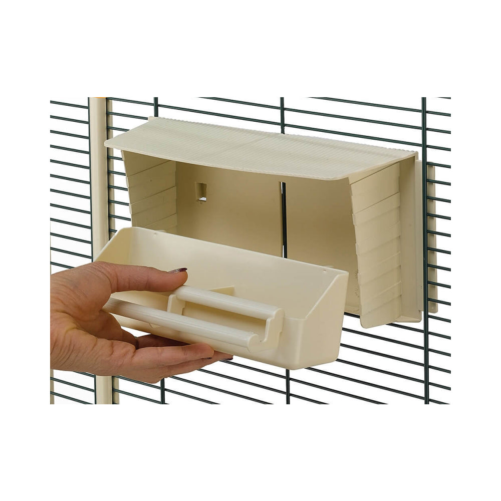 L 289 ist ein nützlicher Schutz für Kanarienvogel- und Exotenfutternäpfe. Dank des Daches und der Seitenwände wird das Verstreuen des Futters vermieden. Der L289 Futternapfschutz passt perfekt zum Kunststoffnapf FPI 4514 für Kanarienvögel, Exoten und kleine Vögel.