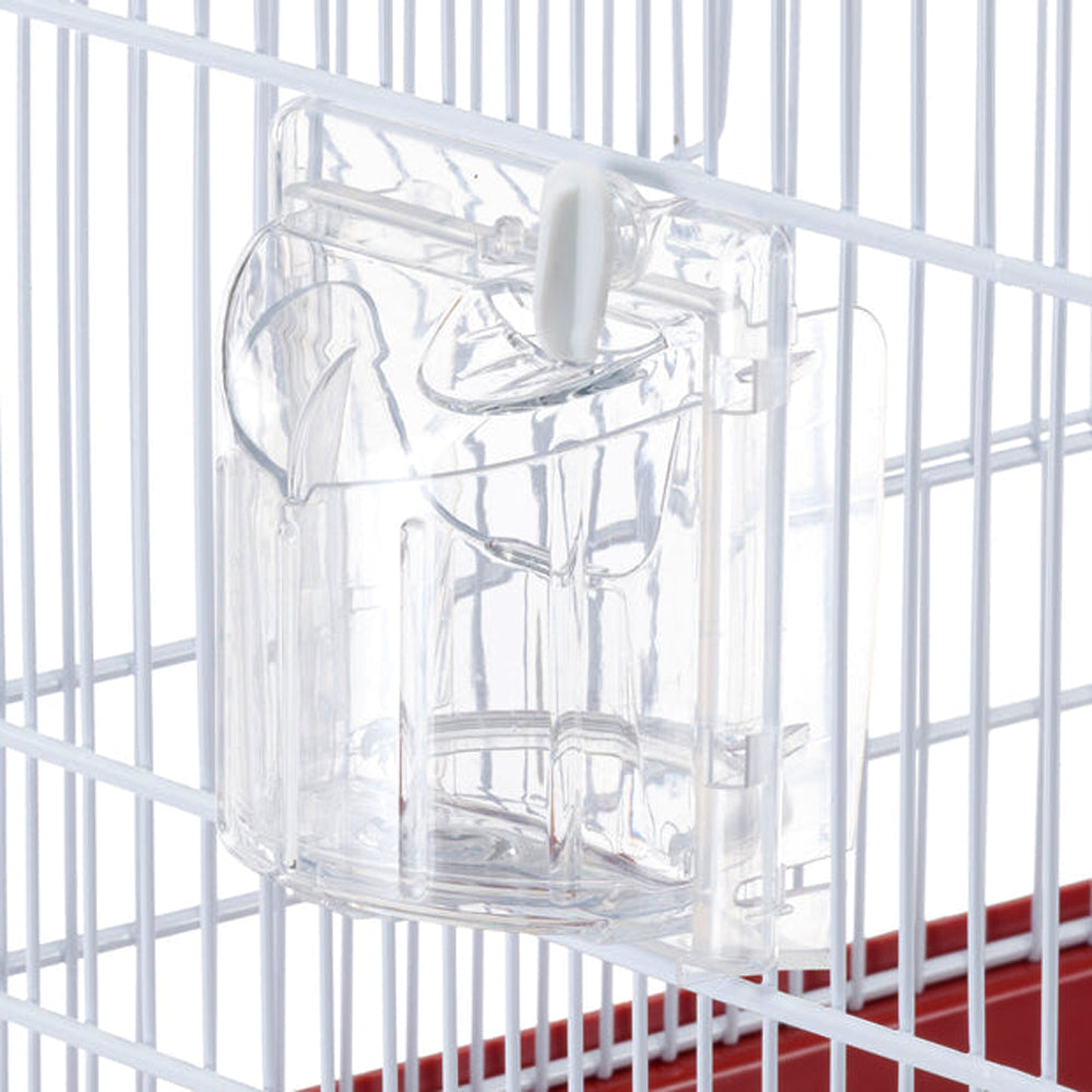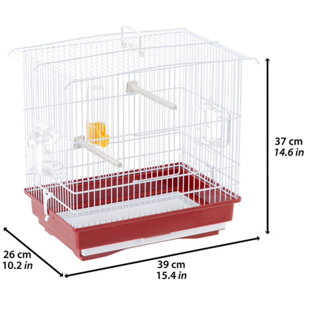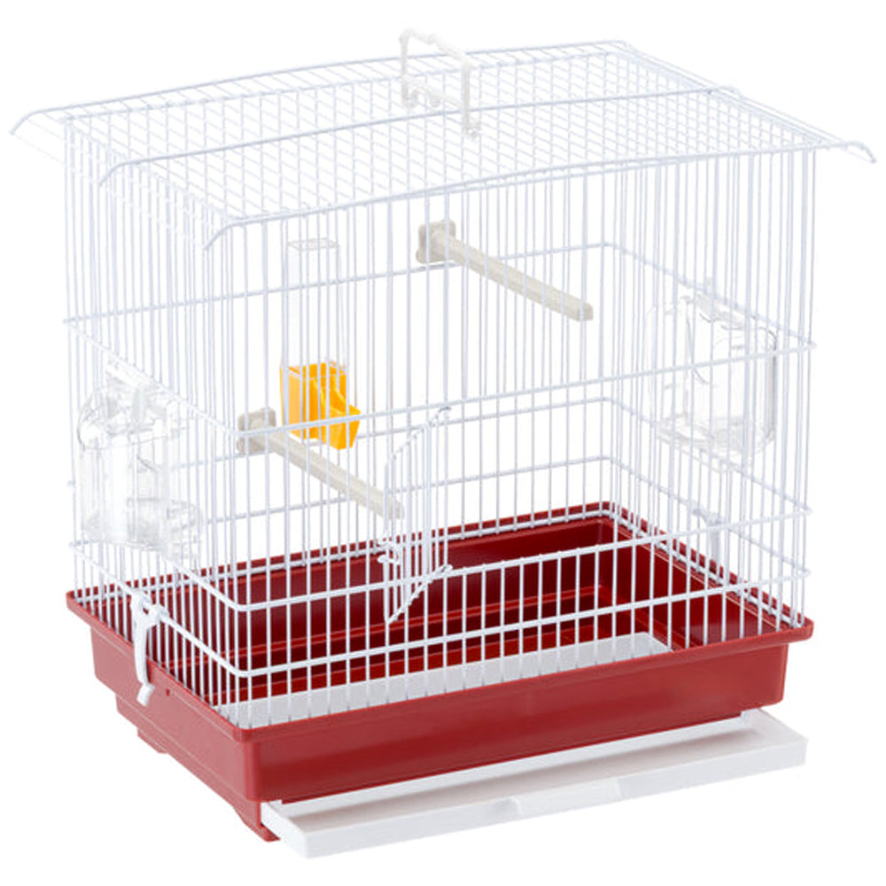 - Stabiler, weiß lackierter Drahtkäfig für kleine Vogelarten