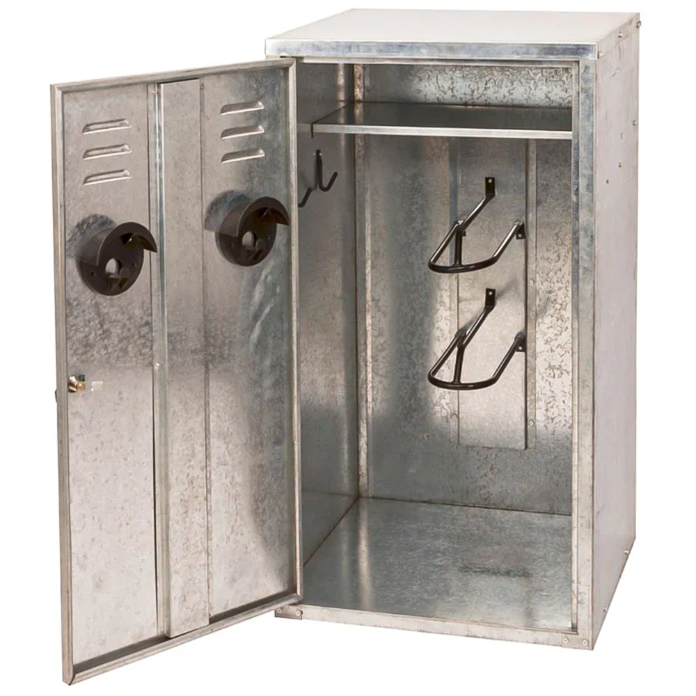 - Sicherer Schutz: Mit sicheren Schlössern sorgt der Spind dafür, dass Gegenstände vor Diebstahl und Beschädigung geschützt sind, und gewährleistet so den Schutz der Ausrüstung Ihres Pferdes.