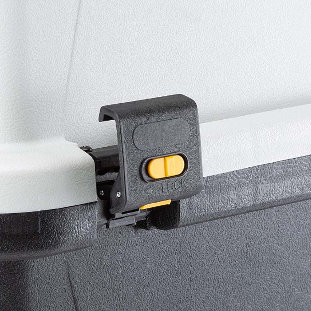 - Die seitliche Verriegelung stoppt mit dem Sicherheitsverriegelungssystem