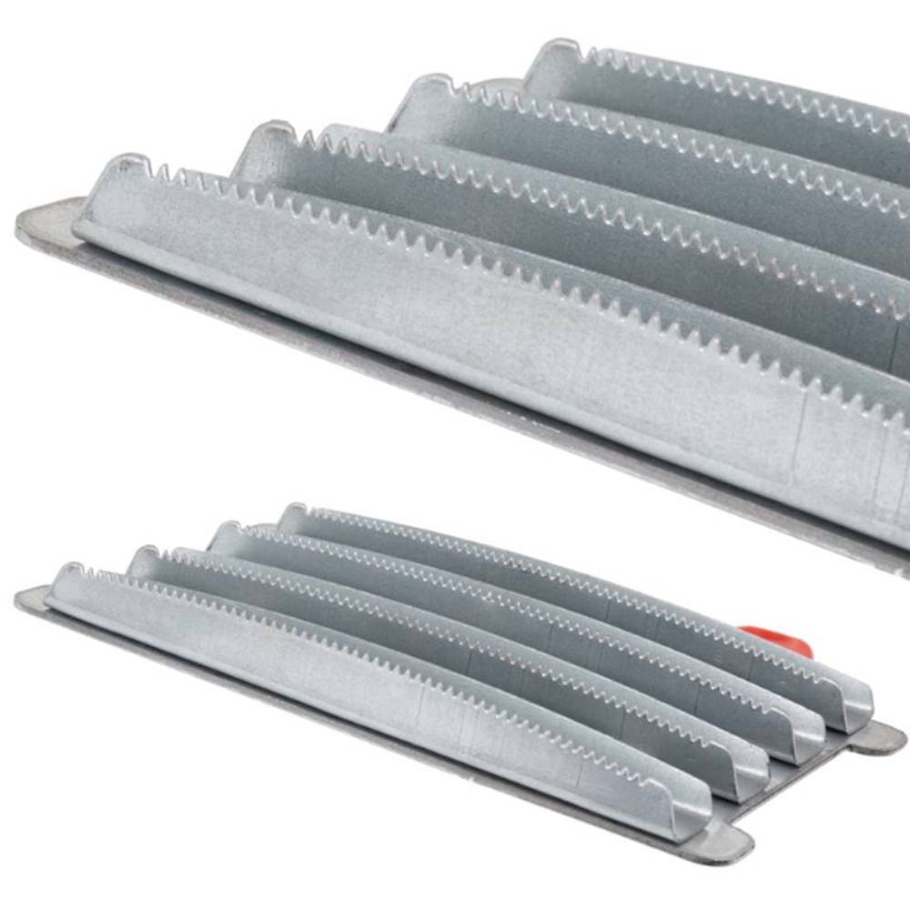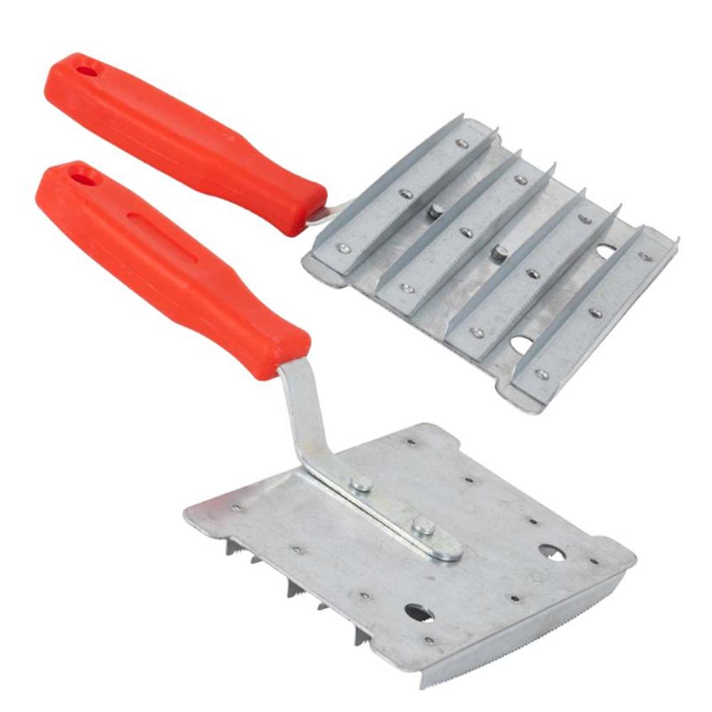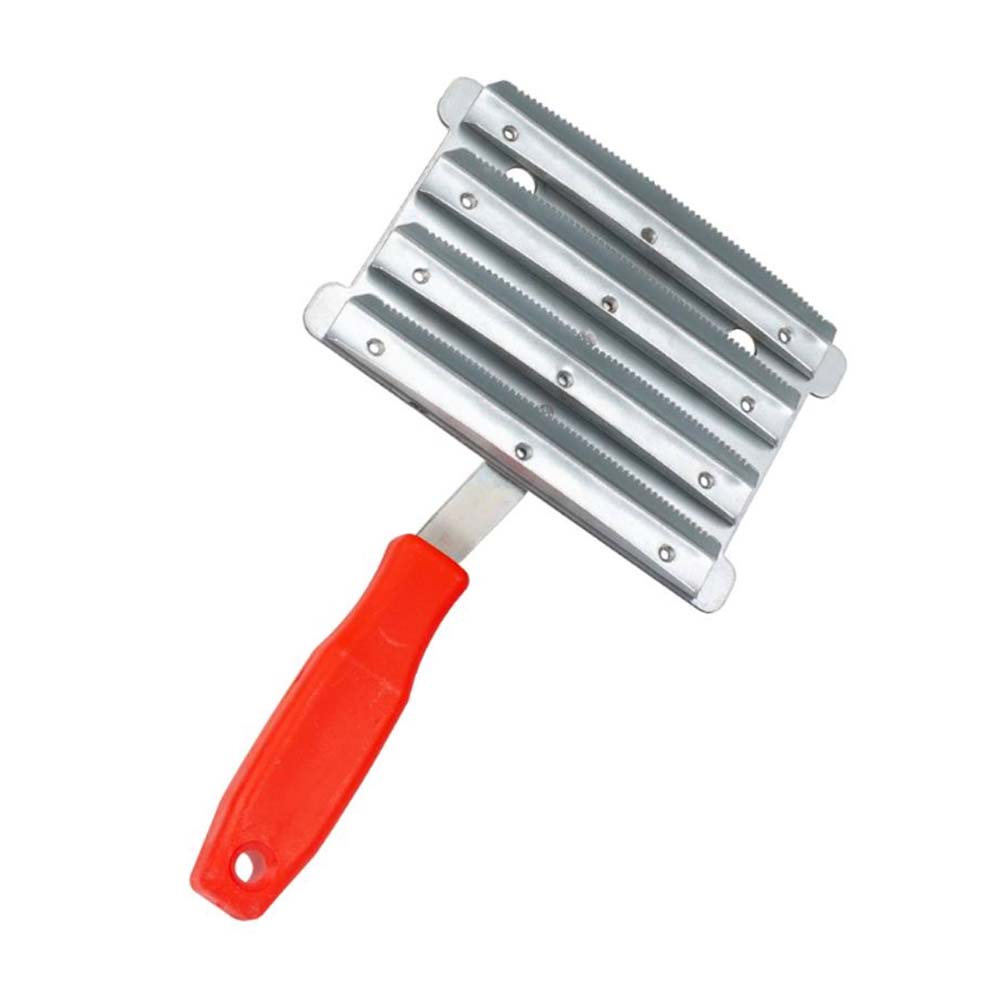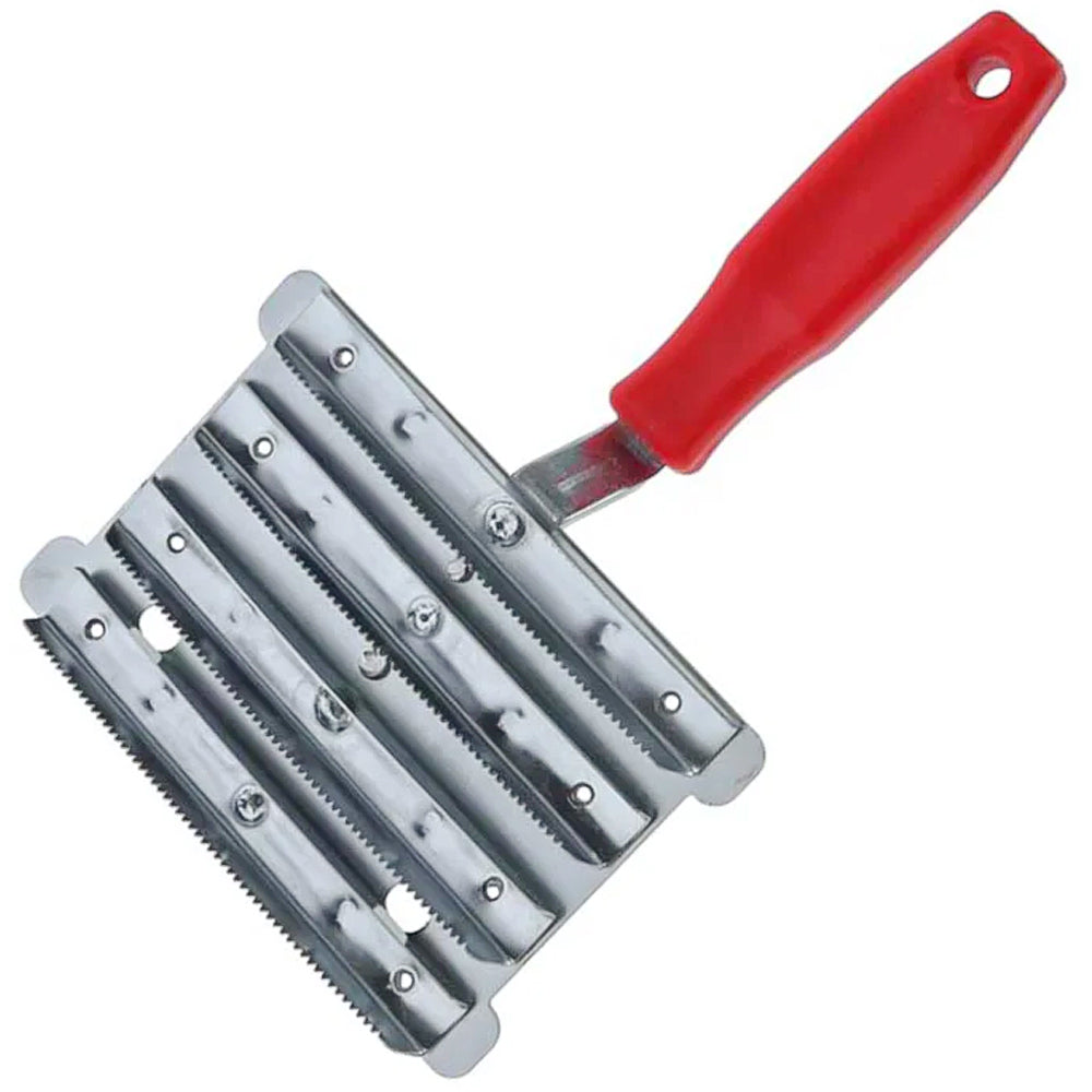 • Verzinkte Reinigungsegge für Kühe und Rinder mit Kunststoffgriff und beabstandeten Zähnen
