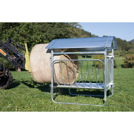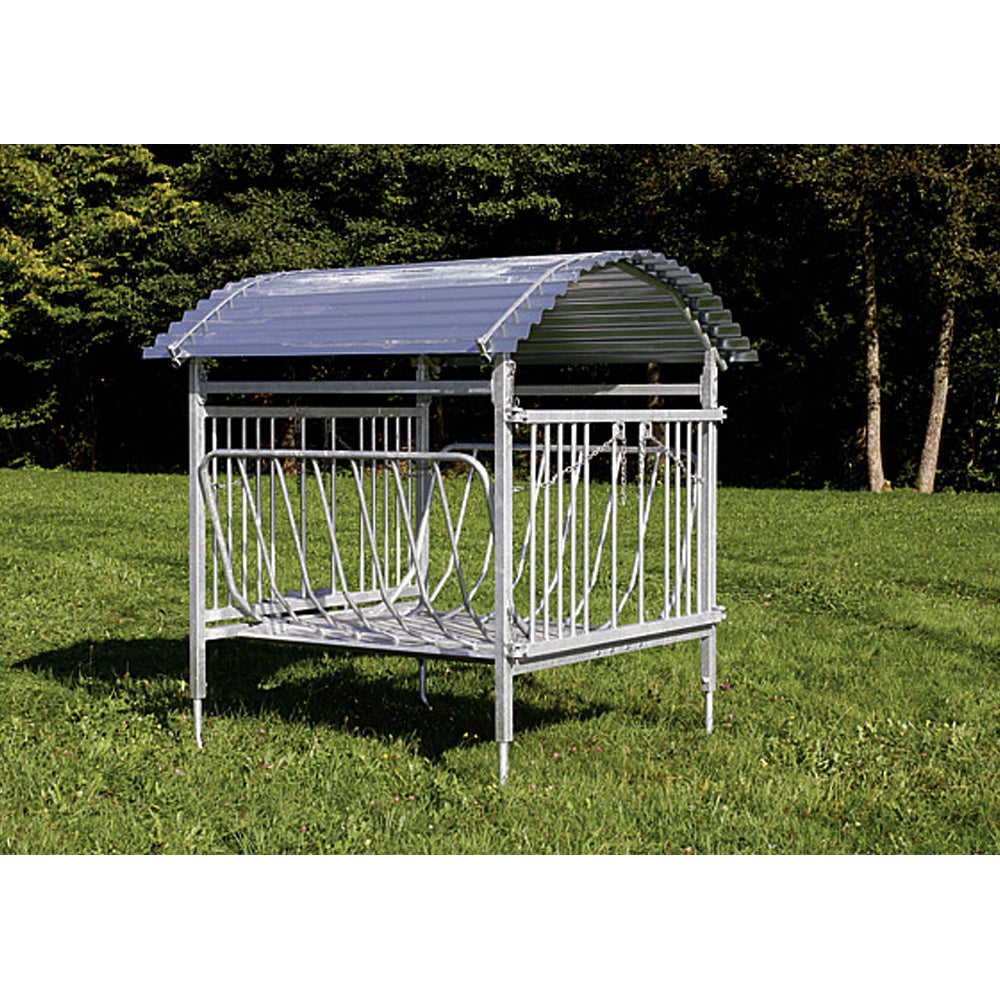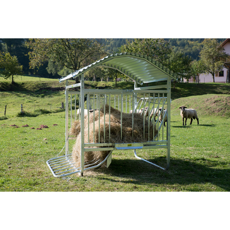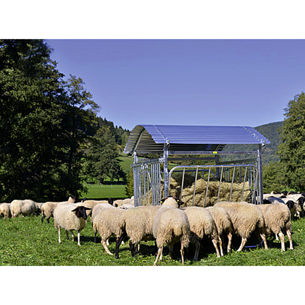 Die rechteckige Futterraufe für Schafe ist in zwei Versionen erhältlich – mit oder ohne Dach – und bietet eine vielseitige Lösung für die Fütterung von Nutztieren. Sie ist speziell für Rundballen mit Heu und Silage bis Ø 1,40 m konzipiert und sorgt für eine effiziente Futterverteilung.