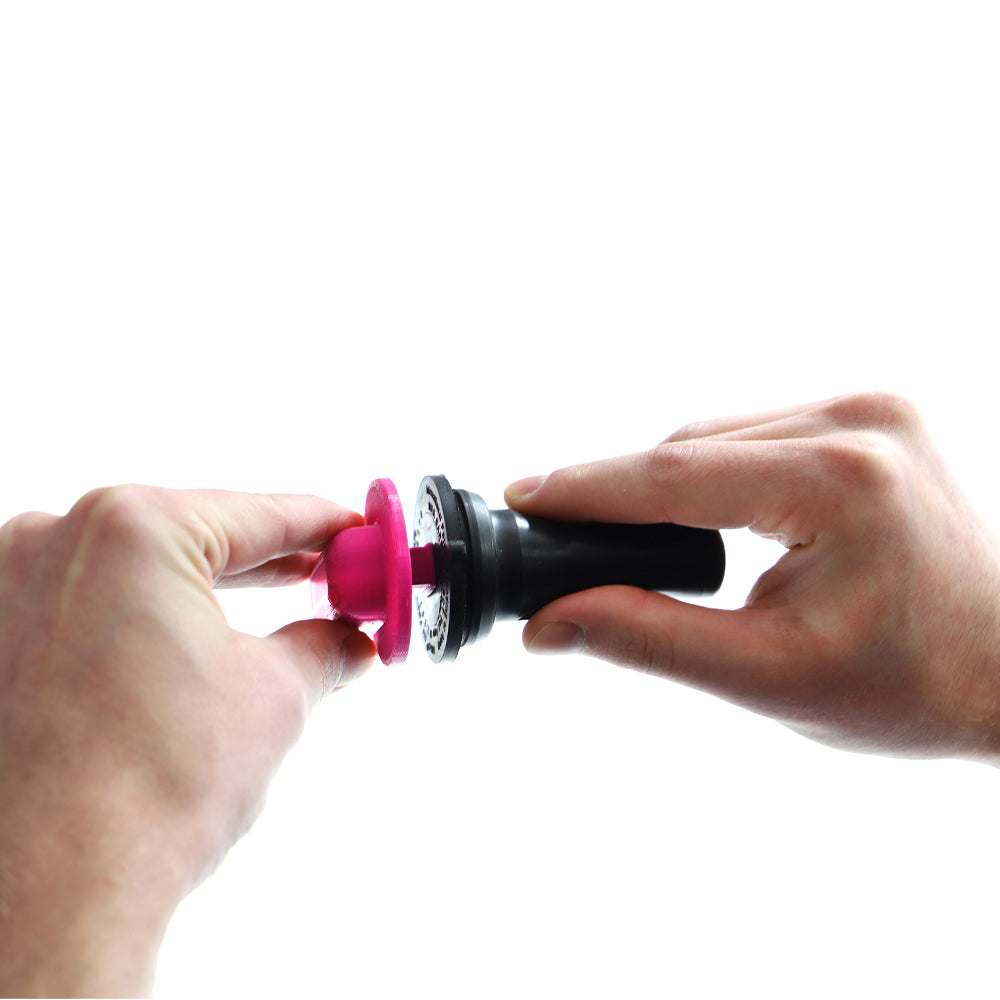 Changing teats is quick and hygienic thanks to the pull-through design and 1 Click system: connect the teat to the connector, pull it through the bucket until it clicks, and ensure proper alignment. Removing worn teats is just as easy—pull the connector to detach, discard the teat, clean, and insert a new one.