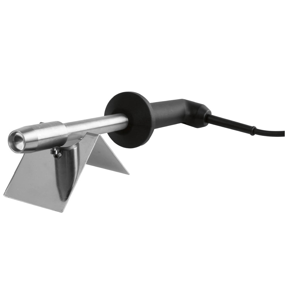 The 230V electric dehorner offers a highly concentrated temperature with a high power reserve, thanks to the thermal cartridge integrated into the tip. The lightweight design ensures great handling and ease of use. Equipped with an ergonomic handle for optimal comfort. The stainless steel base ensures stability and durability over time. The 18 mm stainless steel tip allows for precise and effective operation. Rapid heating ensures immediate use, reducing working times and improving productivity. Ideal for safe and professional use.