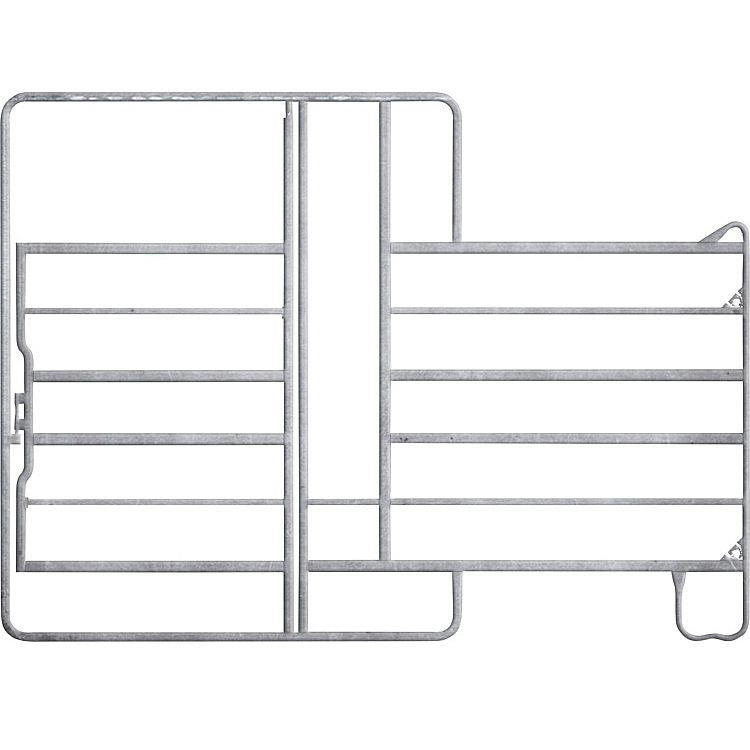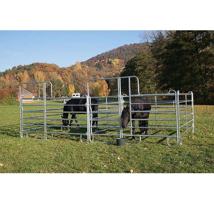The Panel-6 with Gate and Feed Front is a strong, reliable, and versatile solution designed for safe livestock handling. Featuring two tubes turned around for improved construction, the updated version delivers significantly enhanced lateral stability, making it ideal for mobile fencing, paddocks, stables, and feeding stations.