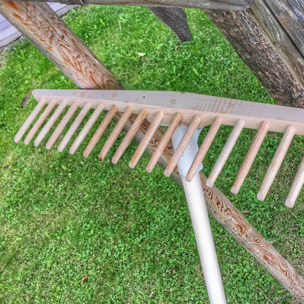 Wooden Rake with Plastic Multiple Teeth Handle: